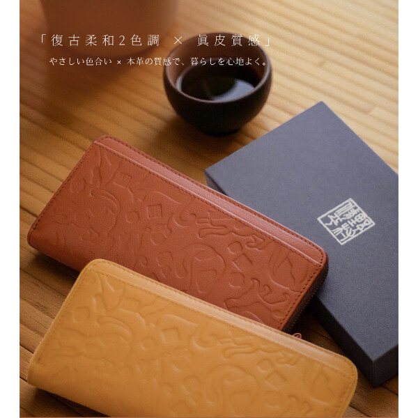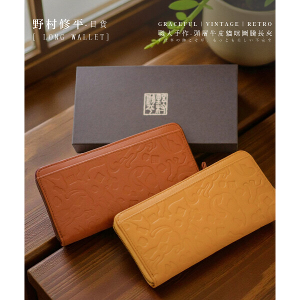 【喜番屋】日貨-真皮頭層牛皮貓咪圖騰拉鍊長夾皮夾錢包女夾-野村修平【LH1143】
