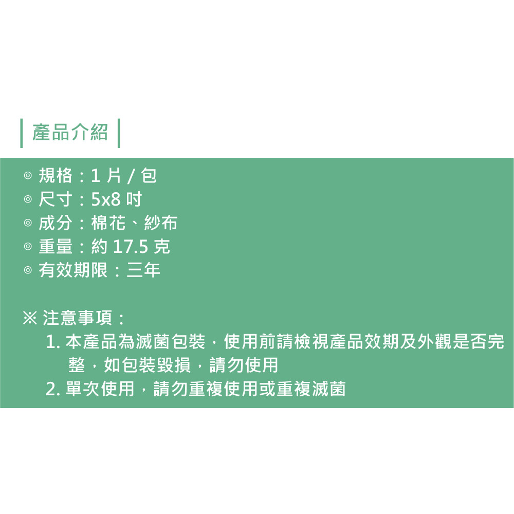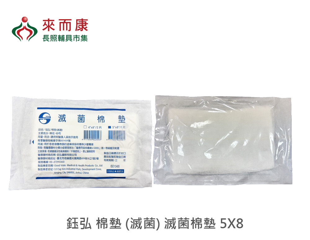 來而康 鈺弘 棉墊 (滅菌) 滅菌棉墊 5X8 1片/包 300包/箱 滅菌 吸收纖維 棉花 紗布