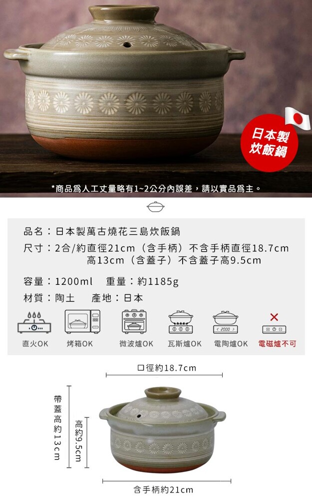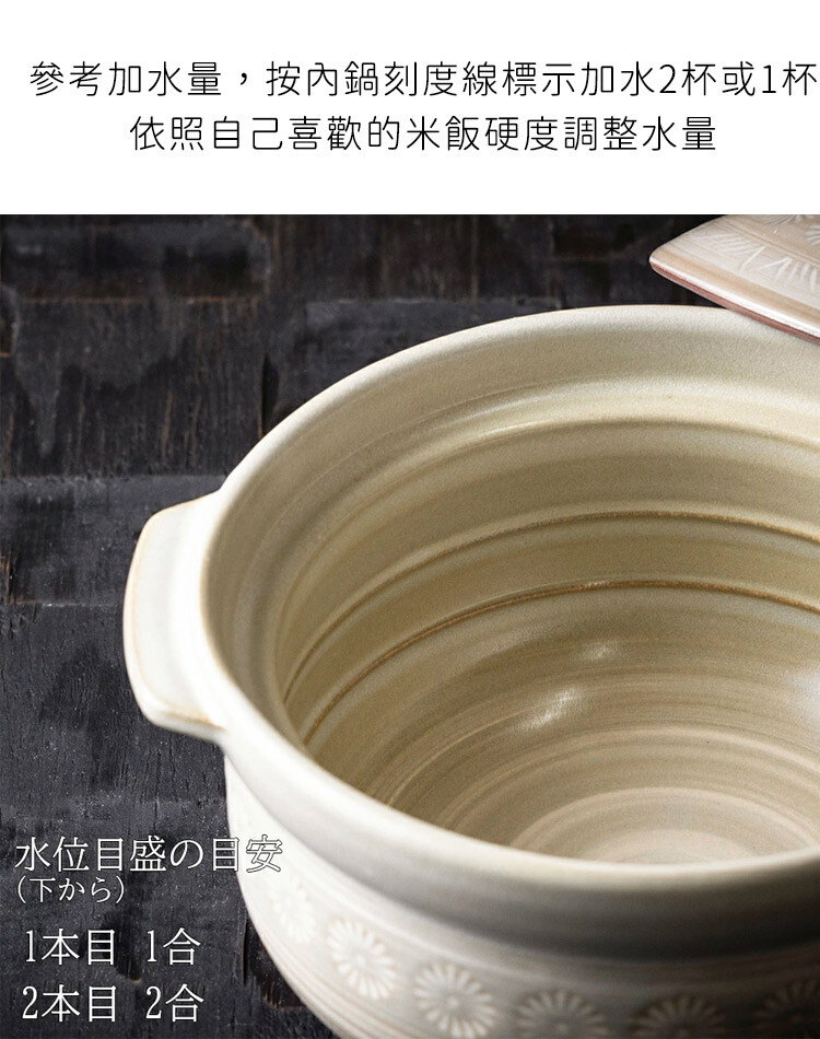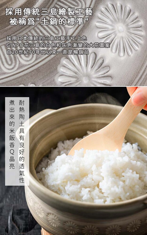 商品品名:【銀峰】日本製萬古燒花三島炊飯鍋-2合1200ml