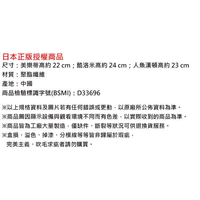 三麗鷗 絨毛玩偶 22cm 娃娃 玩偶 美樂蒂 酷洛米 147361 147569 147927