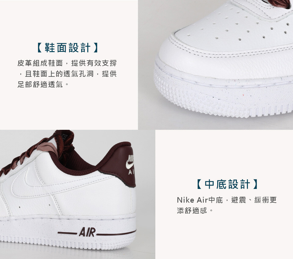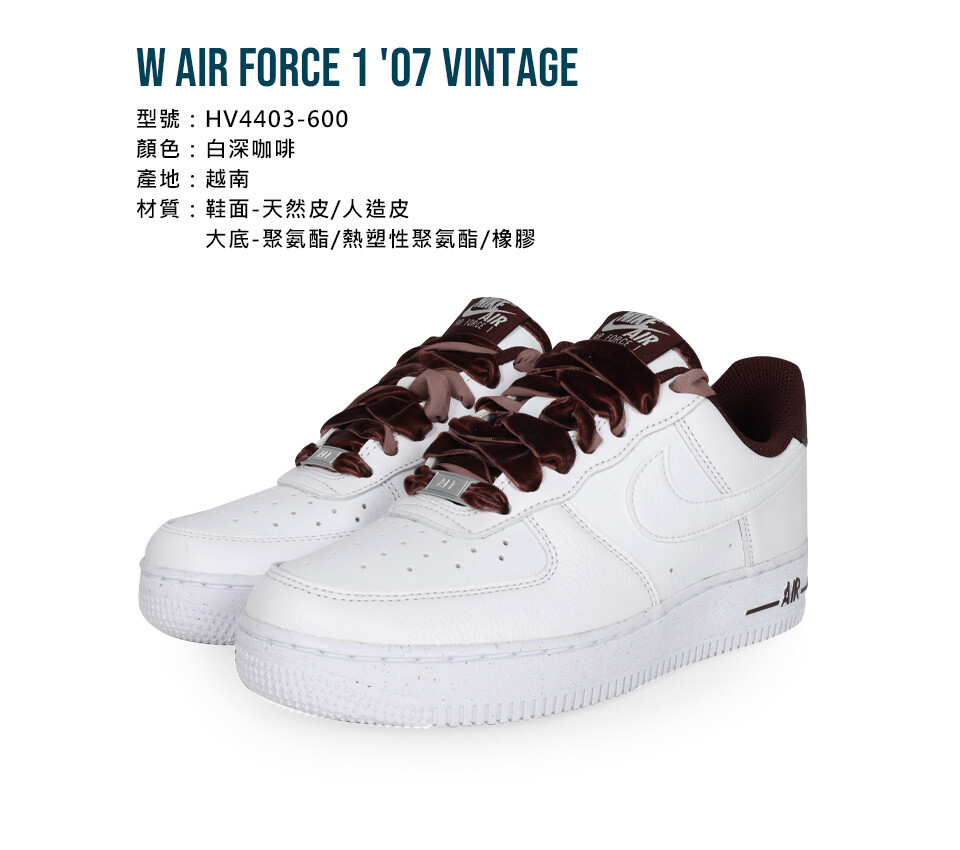 NIKE W AIR FORCE 1 07 VINTAGE 男女運動休閒鞋 白深咖啡