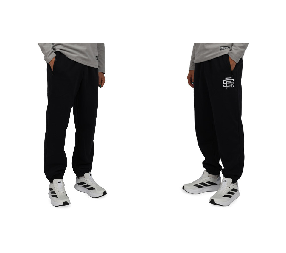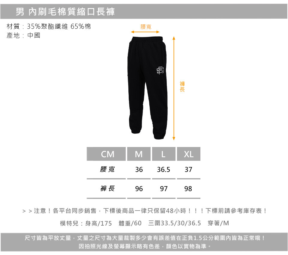 FIRESTAR 男內刷毛棉質縮口長褲-慢跑 路跑 運動 訓練 黑白