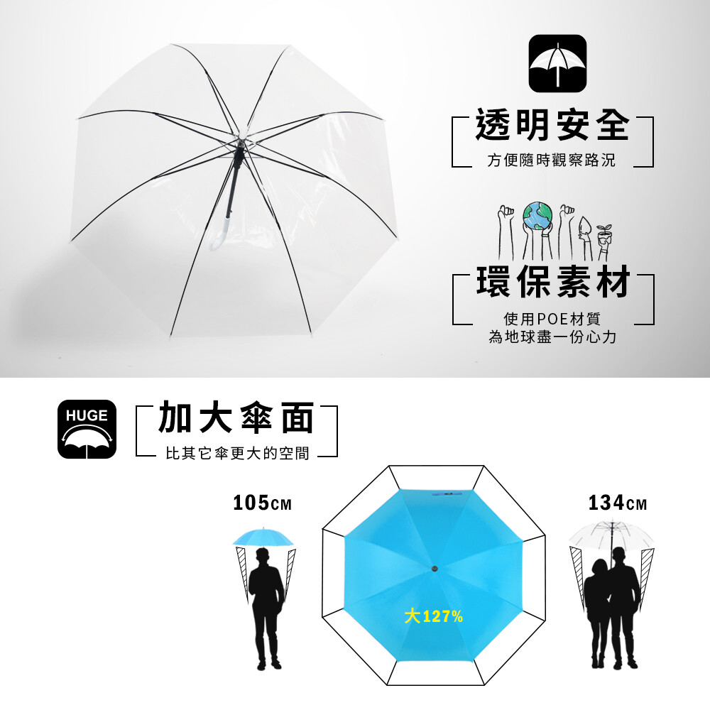 【雙龍牌】 超大傘面日系透明傘 玻纖防風直傘雨傘(自動直立傘環保傘A5873)