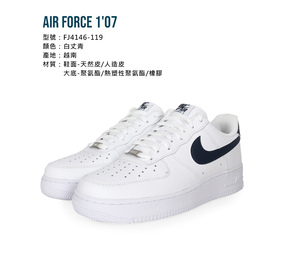 NIKE AIR FORCE 107 男休閒鞋-復古 經典 白丈青
