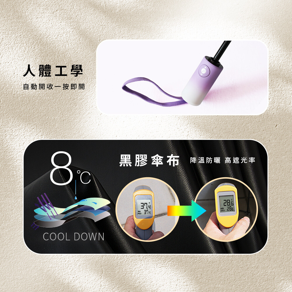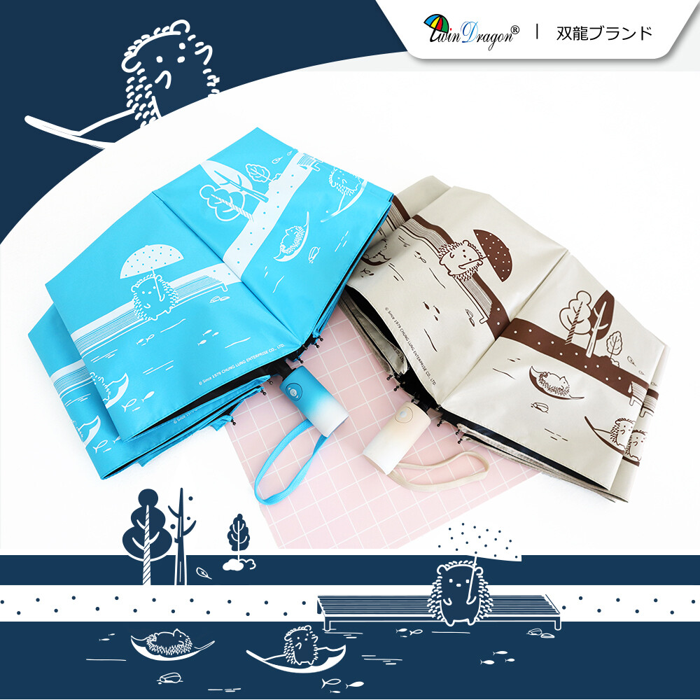 【雙龍牌】漂流刺蝟輕量黑膠自動開收傘防曬自動傘(抗UV防風晴雨傘陽傘折傘B6061G)