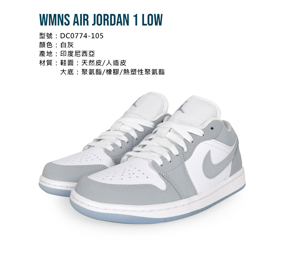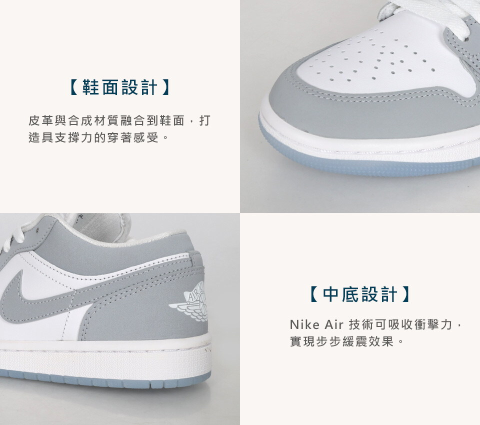 NIKE WMNS AIR JORDAN 1 LOW 男女運動休閒鞋-戶外 白灰