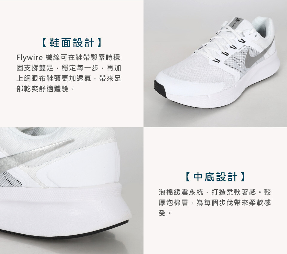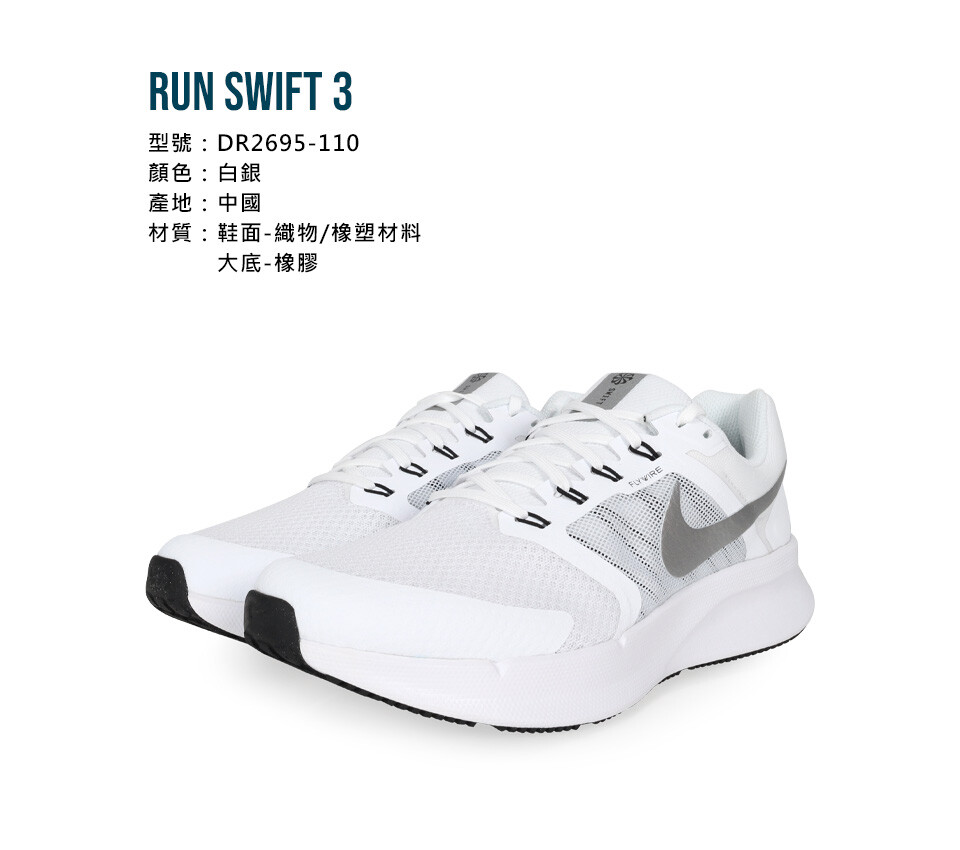NIKE RUN SWIFT 3 男緩震透氣運動鞋-路跑 運動 白銀