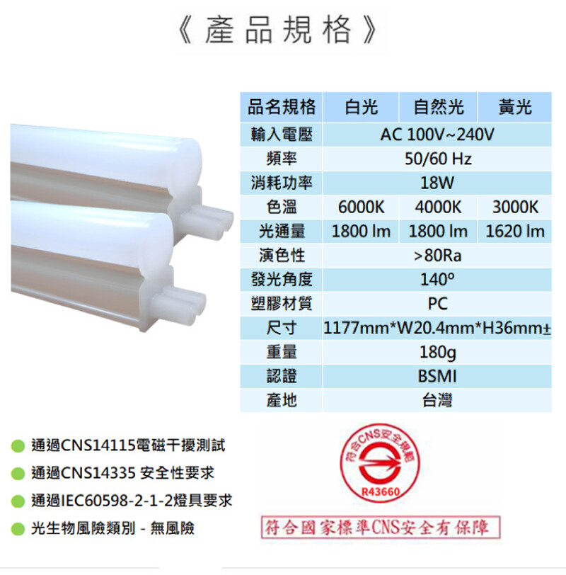 光通量:白光1800LM 自然光(暖白)1800LM 黃光1620LM