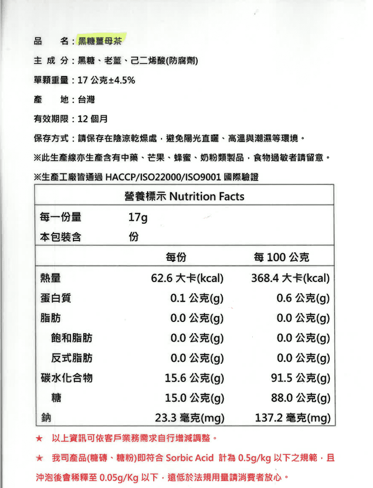 古早味黑糖磚-黑糖薑母茶 17g(6入)