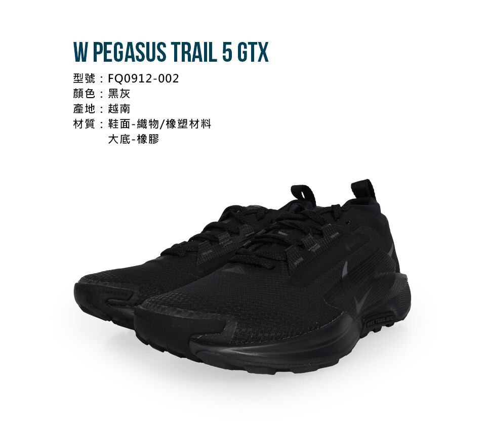 NIKE W PEGASUS TRAIL 5 GTX 女防水越野慢跑鞋-防水 黑灰