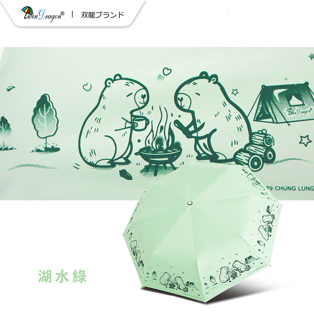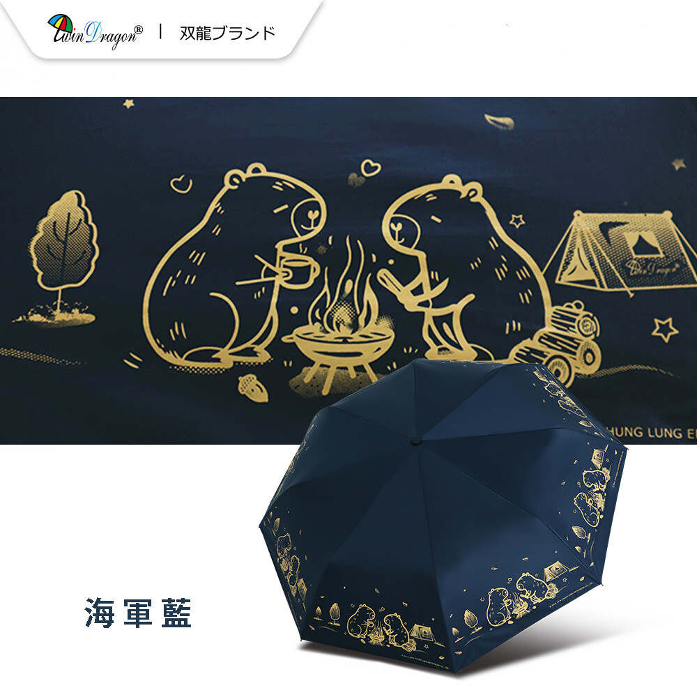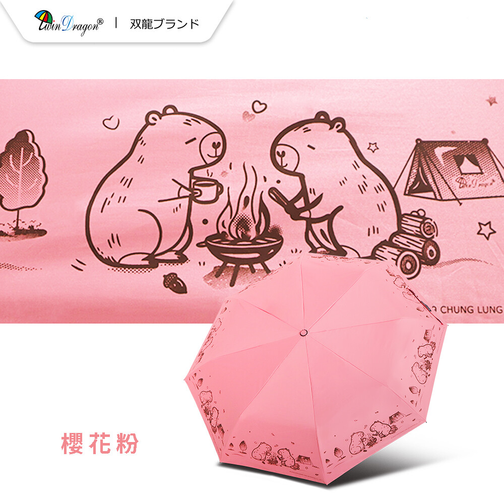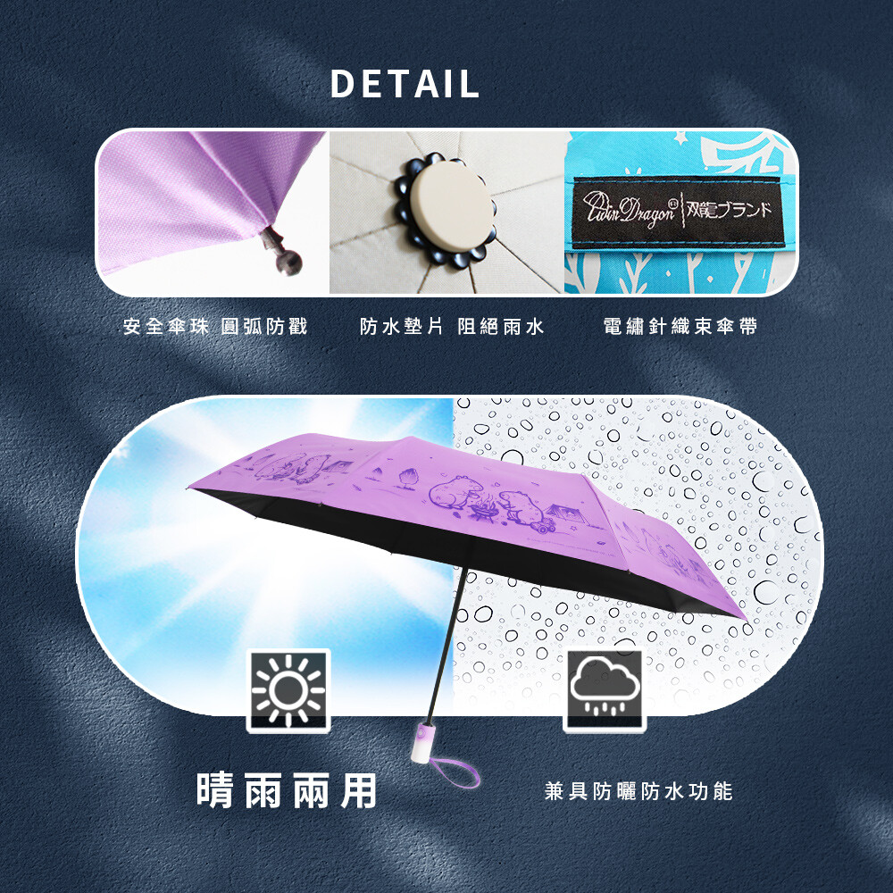 【雙龍牌】卡皮巴拉輕量黑膠自動開收傘防曬自動傘(抗UV防風晴雨傘陽傘折傘B6061J)