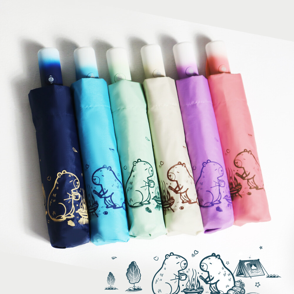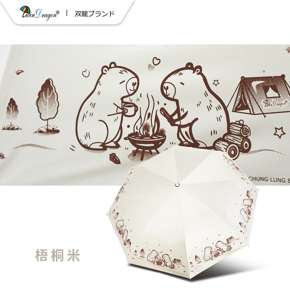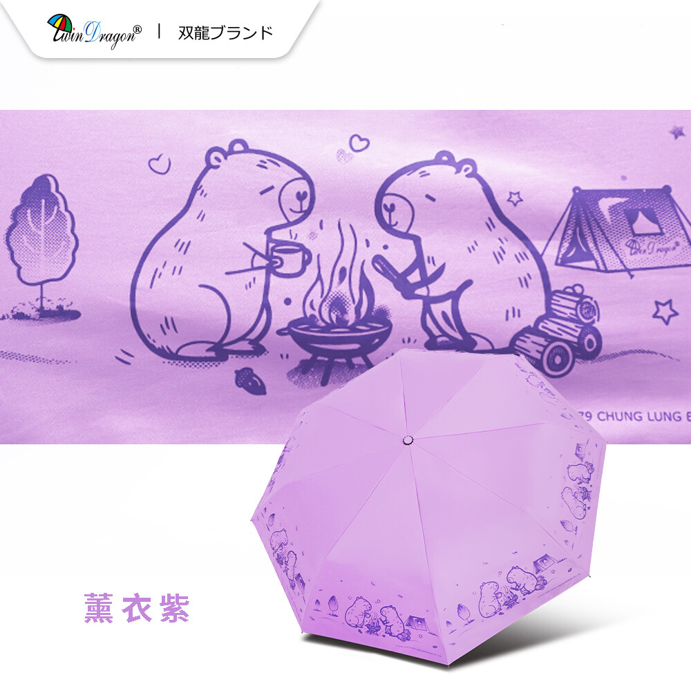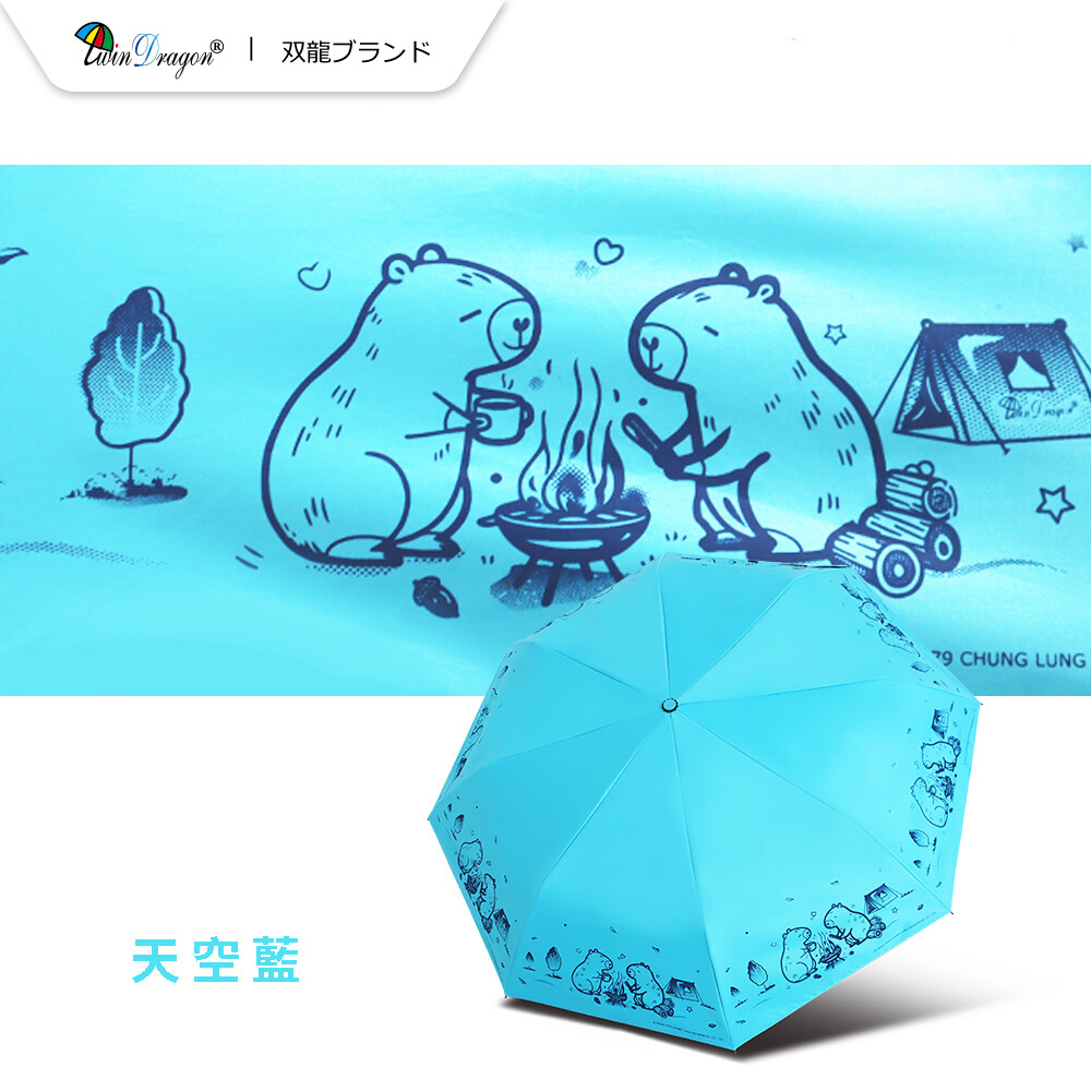 【雙龍牌】卡皮巴拉輕量黑膠自動開收傘防曬自動傘(抗UV防風晴雨傘陽傘折傘B6061J)