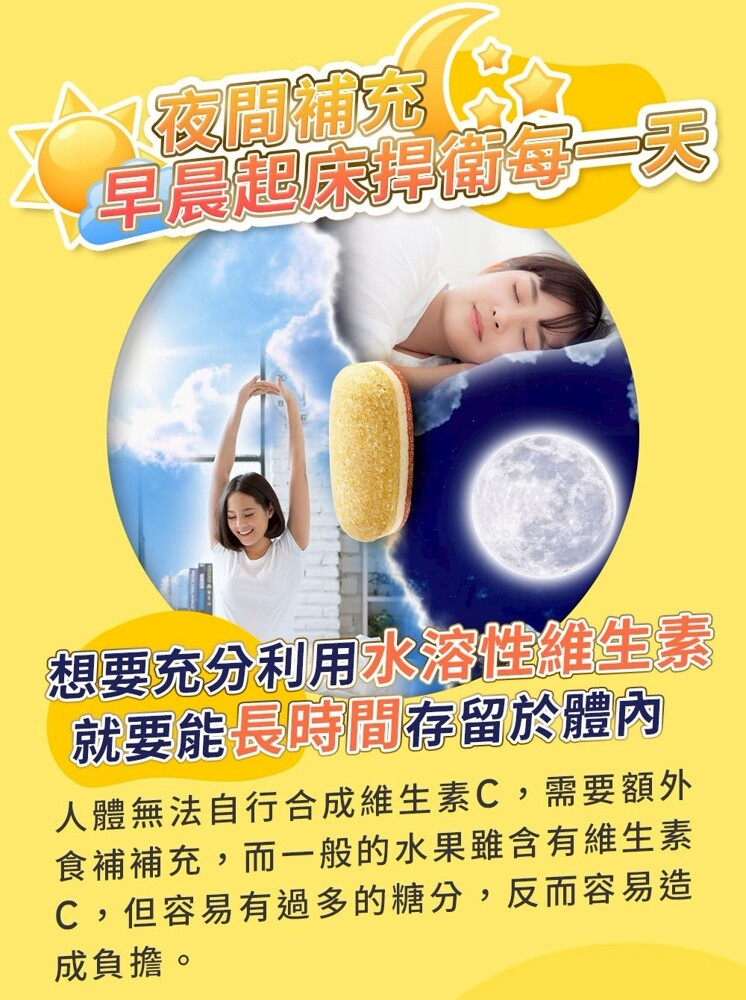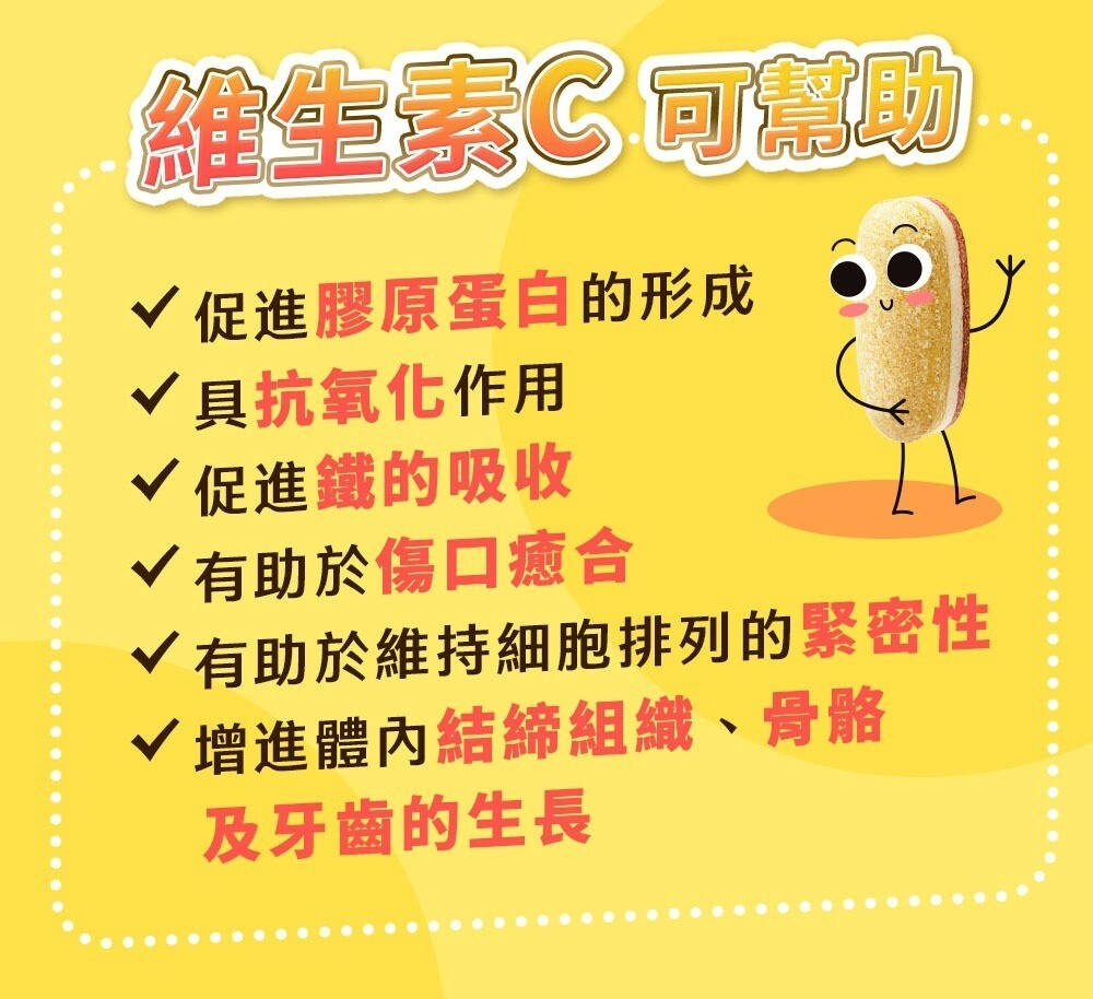 注意事項:本品為錠狀維生素C,長者及幼童食用時請小心吞服