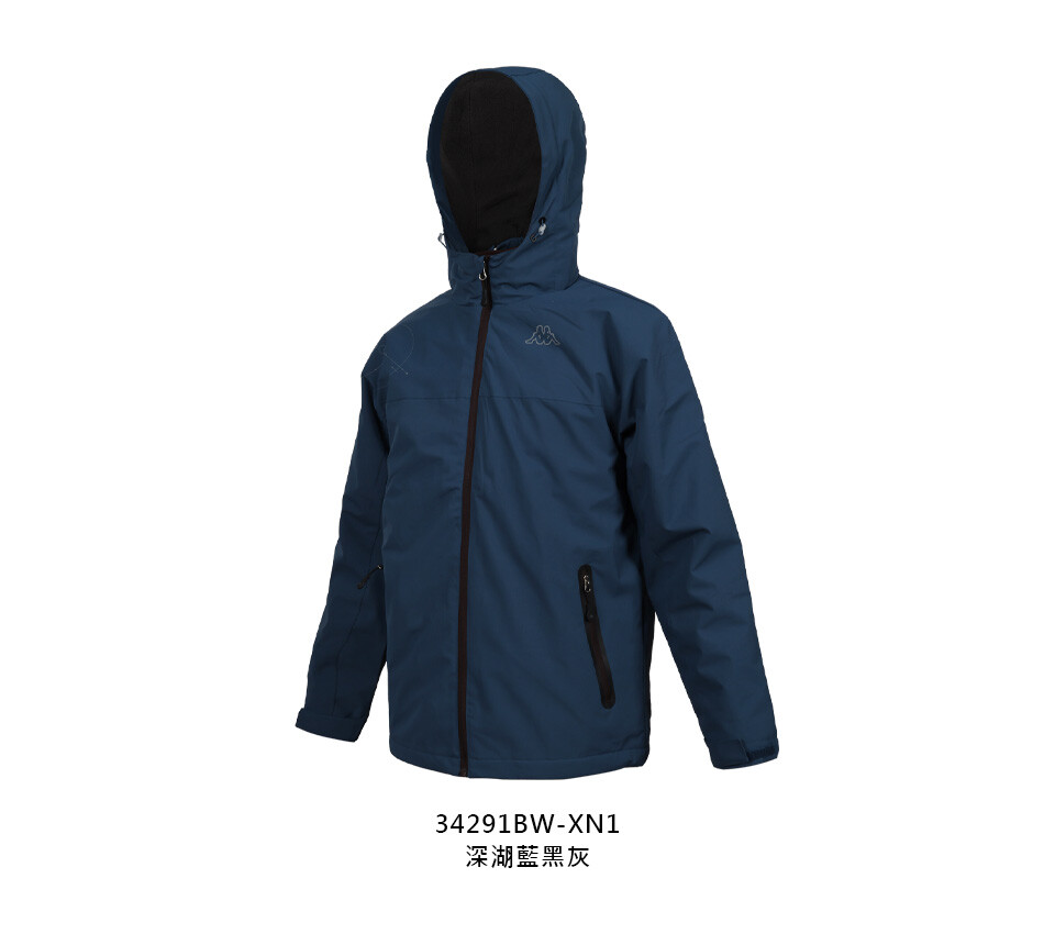 KAPPA 男女平織兩件式防水外套-防潑水 運動 慢跑 上衣 深湖藍黑灰