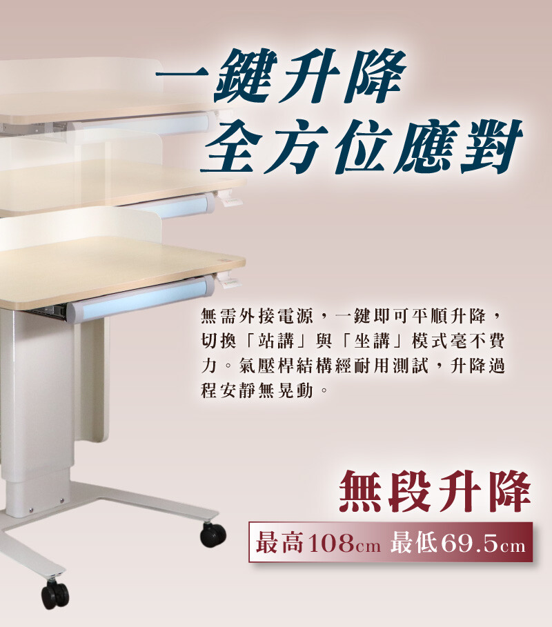搭載平穩的線控氣壓升降系統,只需輕鬆一按即可自由調整高度,尋找最佳高度。