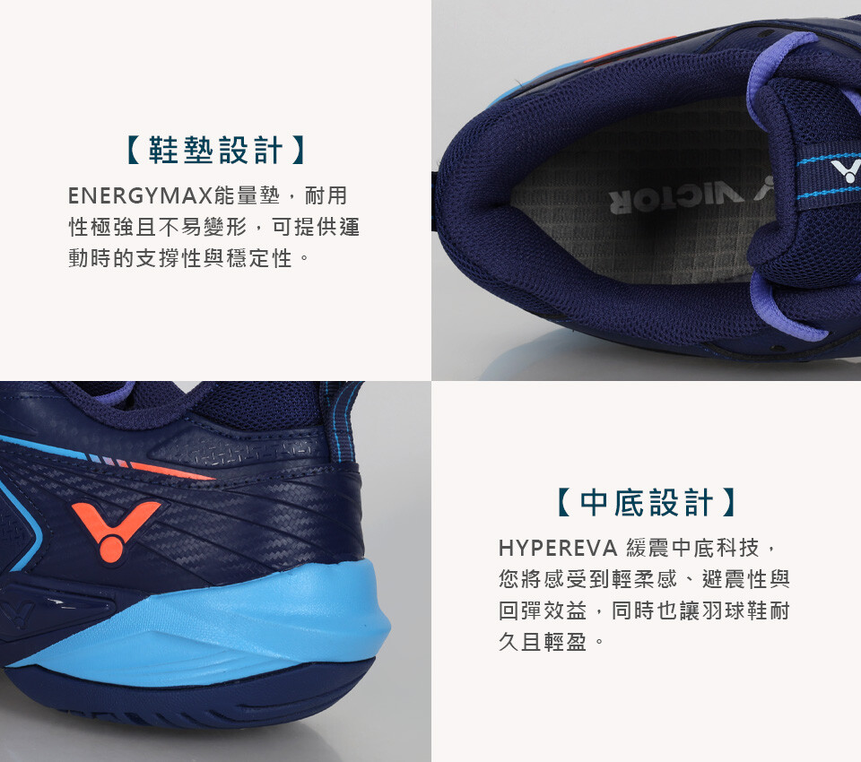 VICTOR 男羽球鞋-訓練 運動 U型楦 寬楦 勝利 丈青藍橘