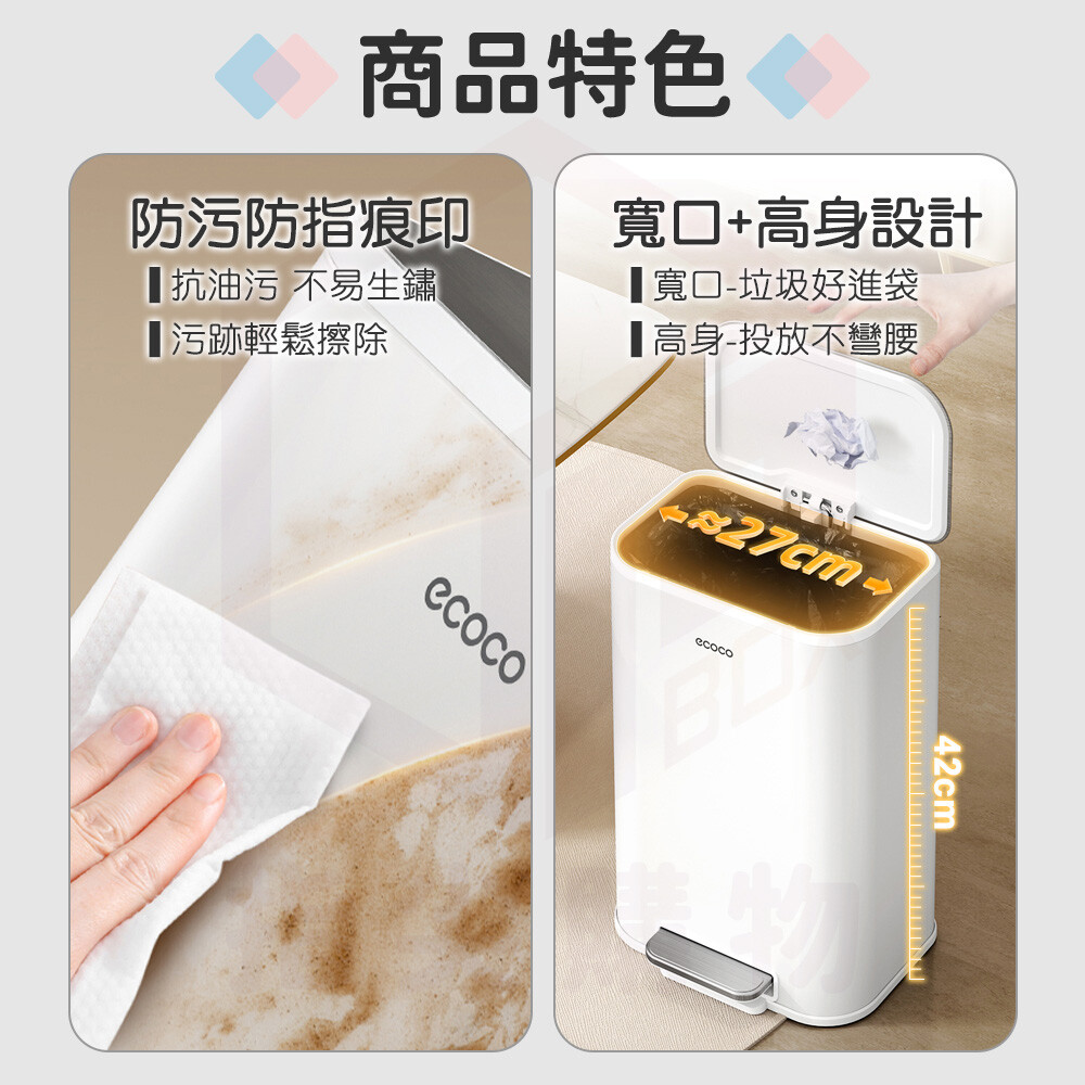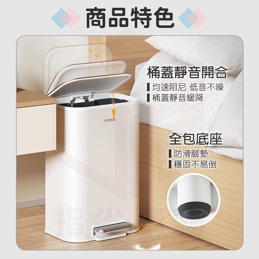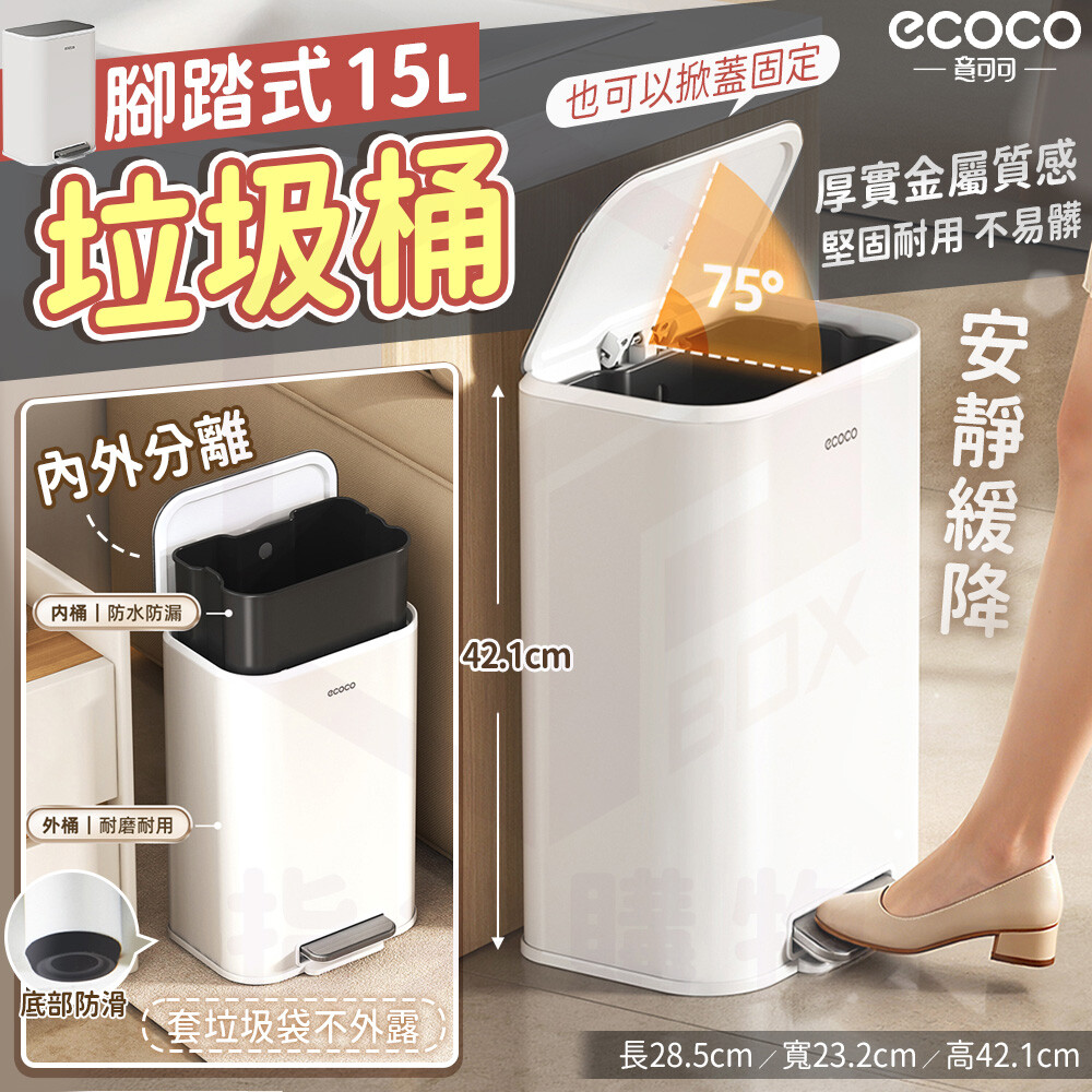 ecoco 原廠授權|15L腳踏式金屬垃圾桶