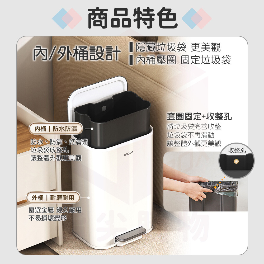 🔹 內外雙桶結構|輕鬆固定垃圾袋,不滑落不凌亂