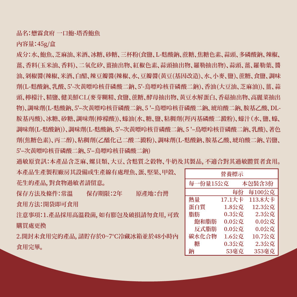 【懋霖食府】一口鮑魚-塔香鮑魚45g/盒
