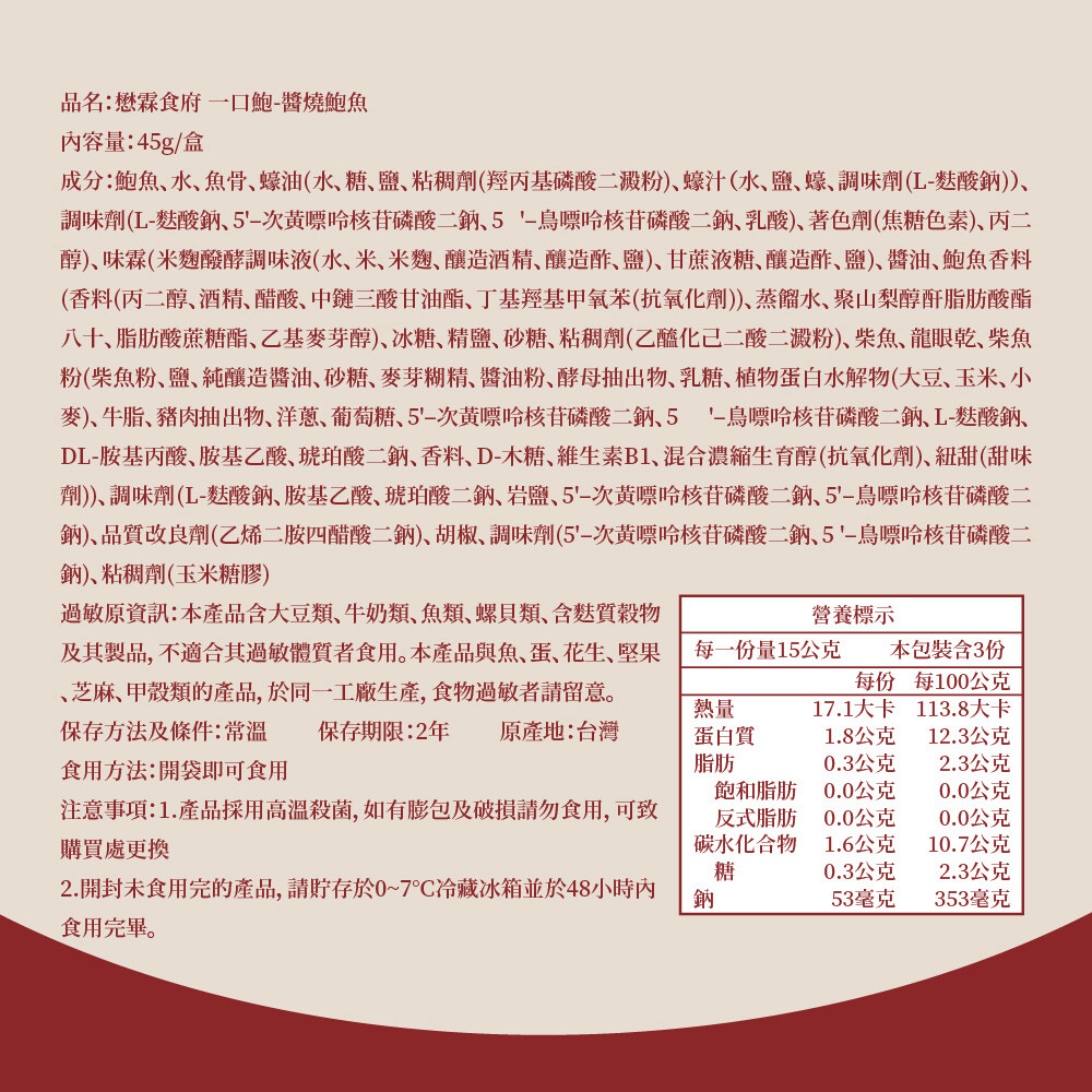 【懋霖食府】一口鮑魚-醬燒鮑魚45g/盒