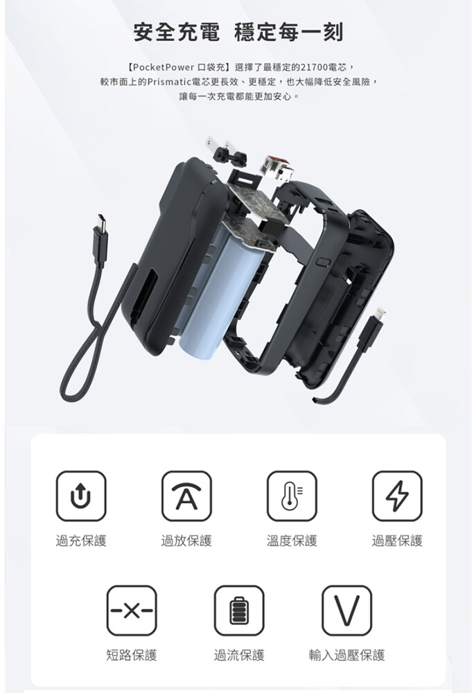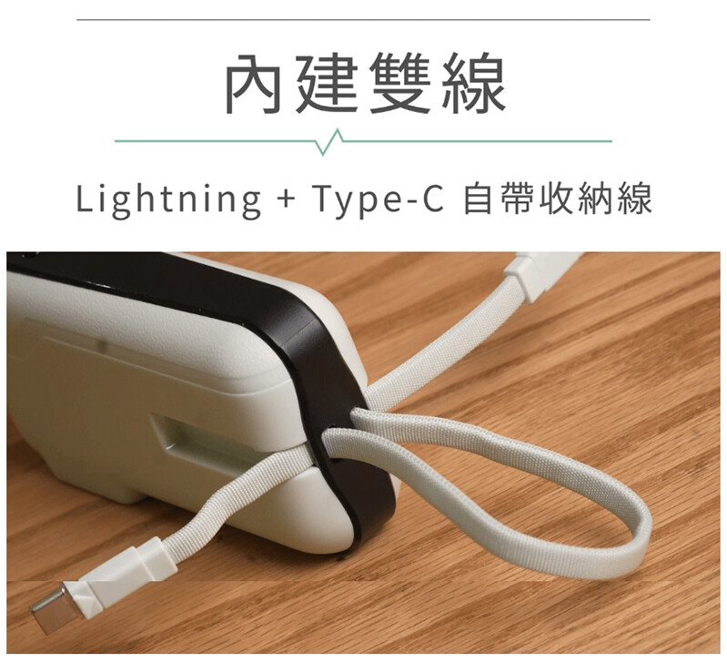 5.雙線內建|Lightning + Type-C 自帶收納線,隨插即用