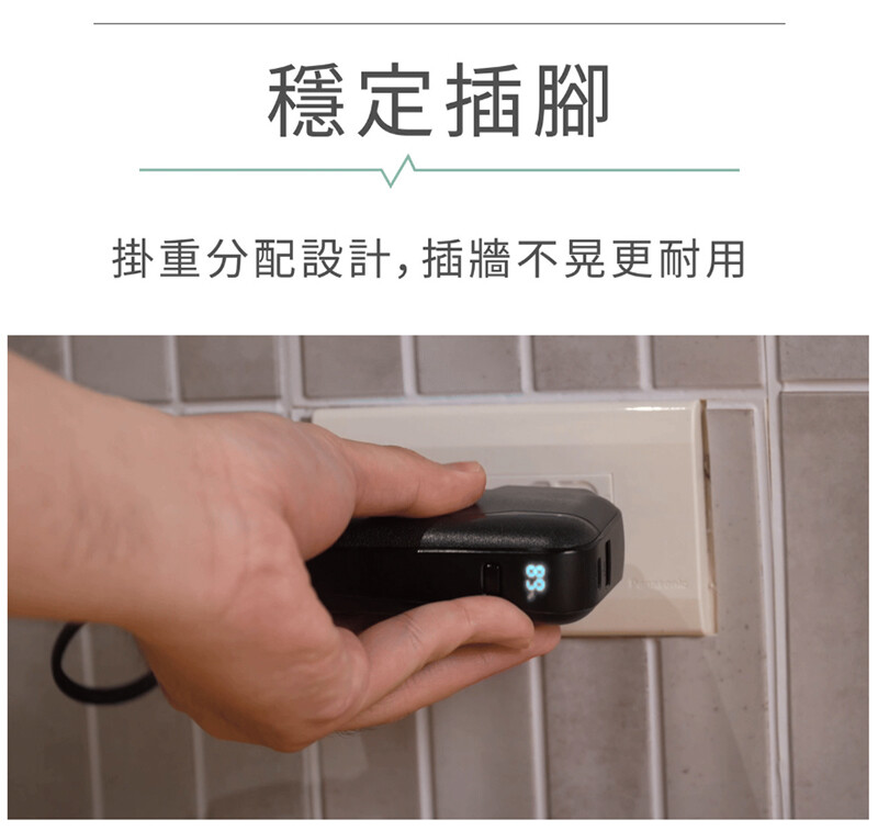 3.插頭設計|自帶插頭+掛重分配設計,插牆不晃更耐用