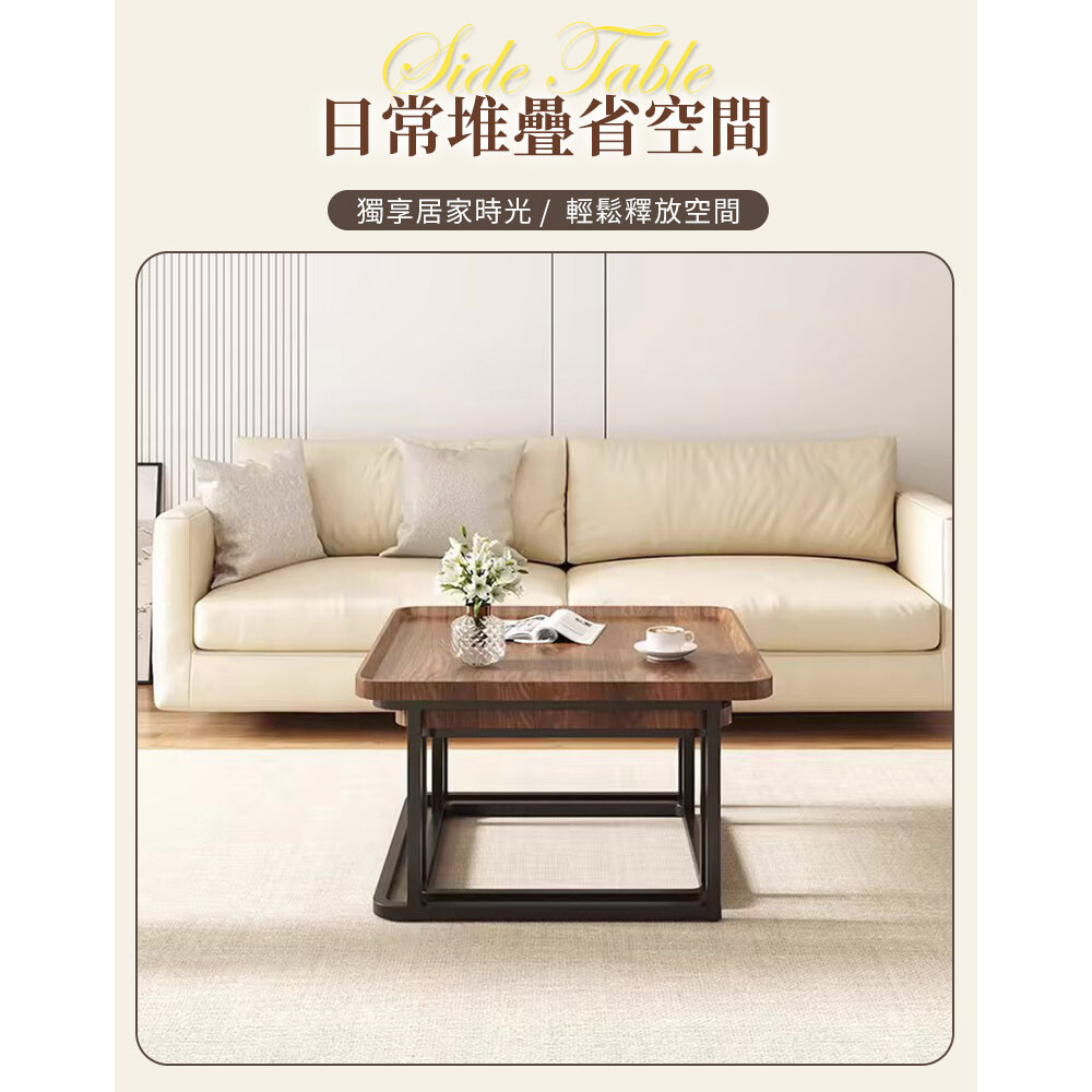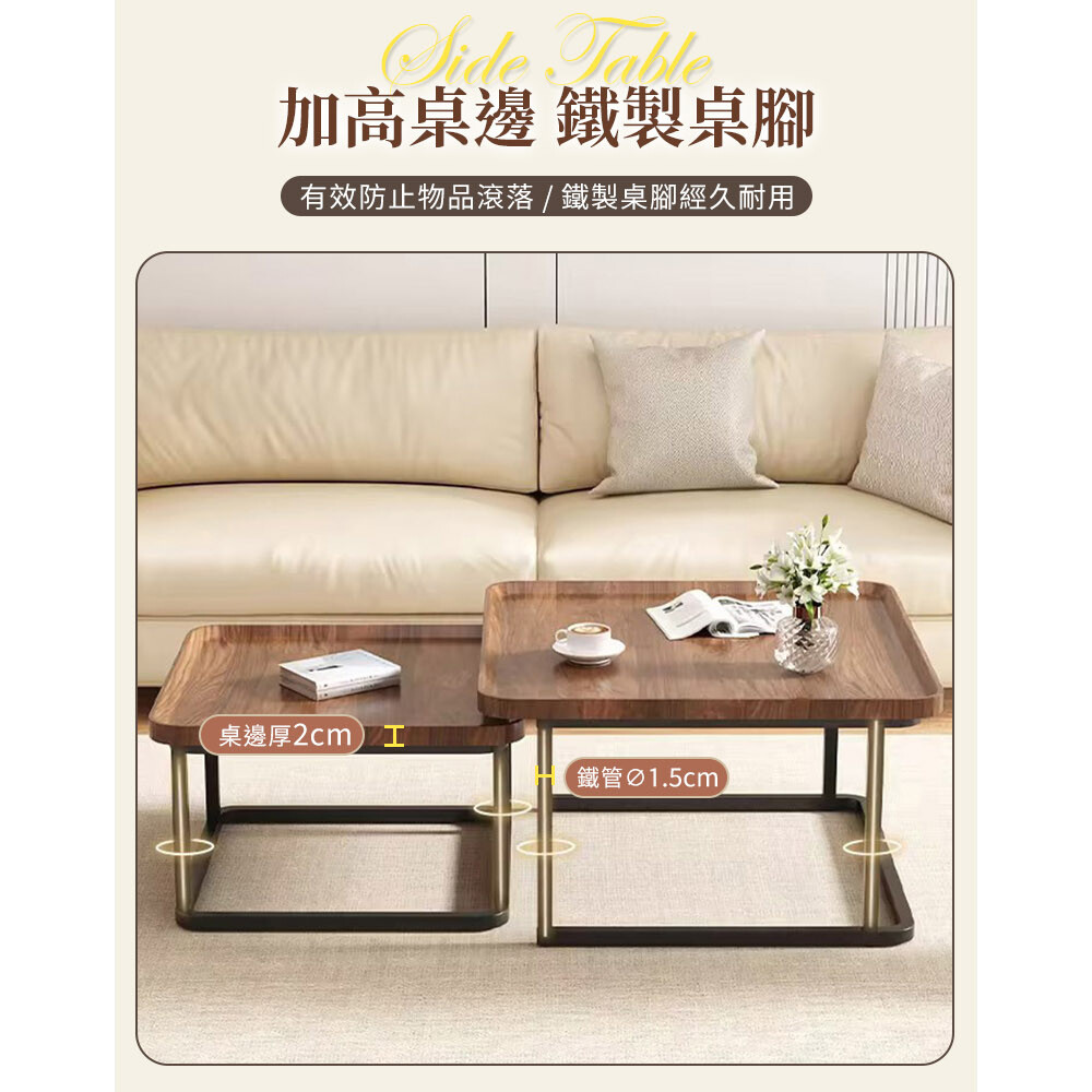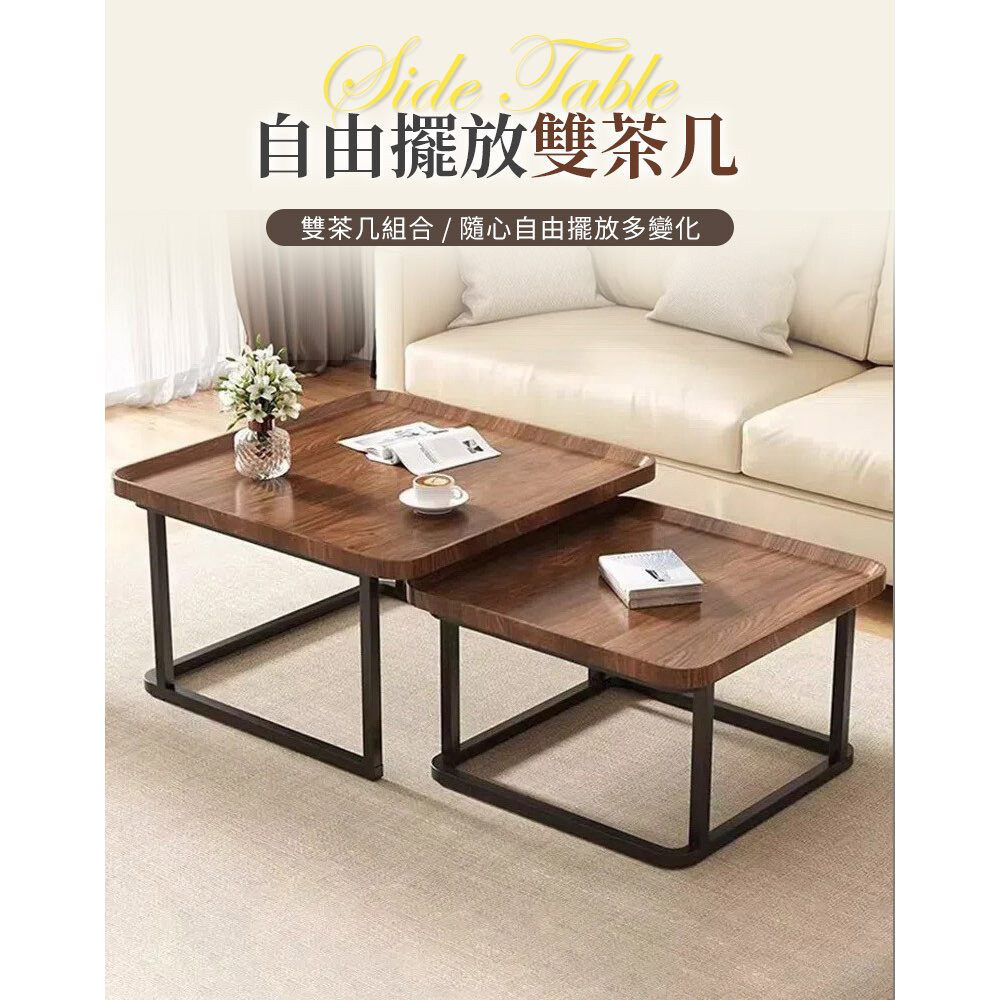 【AOTTO】簡約方形子母茶几組合-大+小(茶几 客聽桌 桌子 子母茶几 疊加)