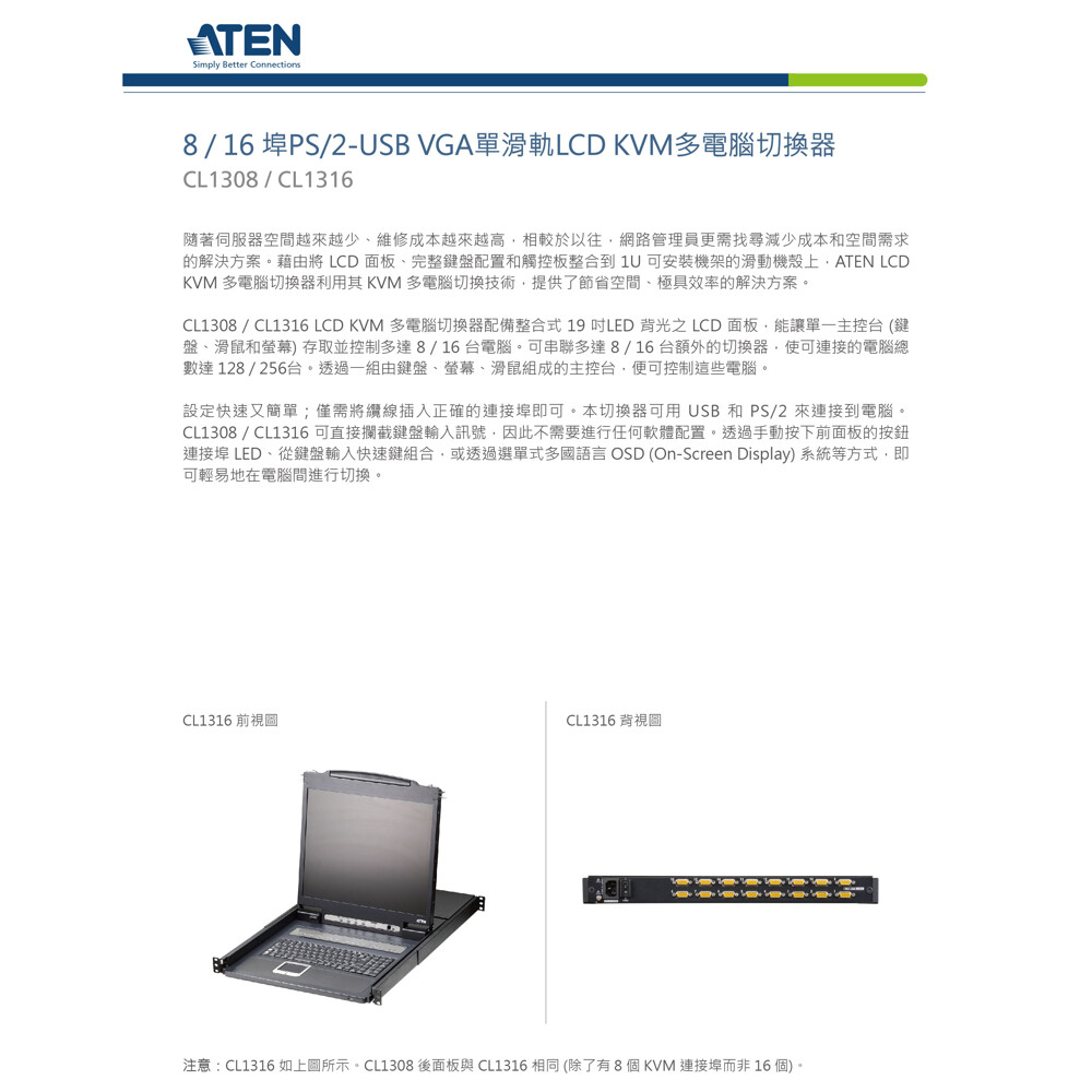與19吋LED背光之LCD面板整合的KVM主控台