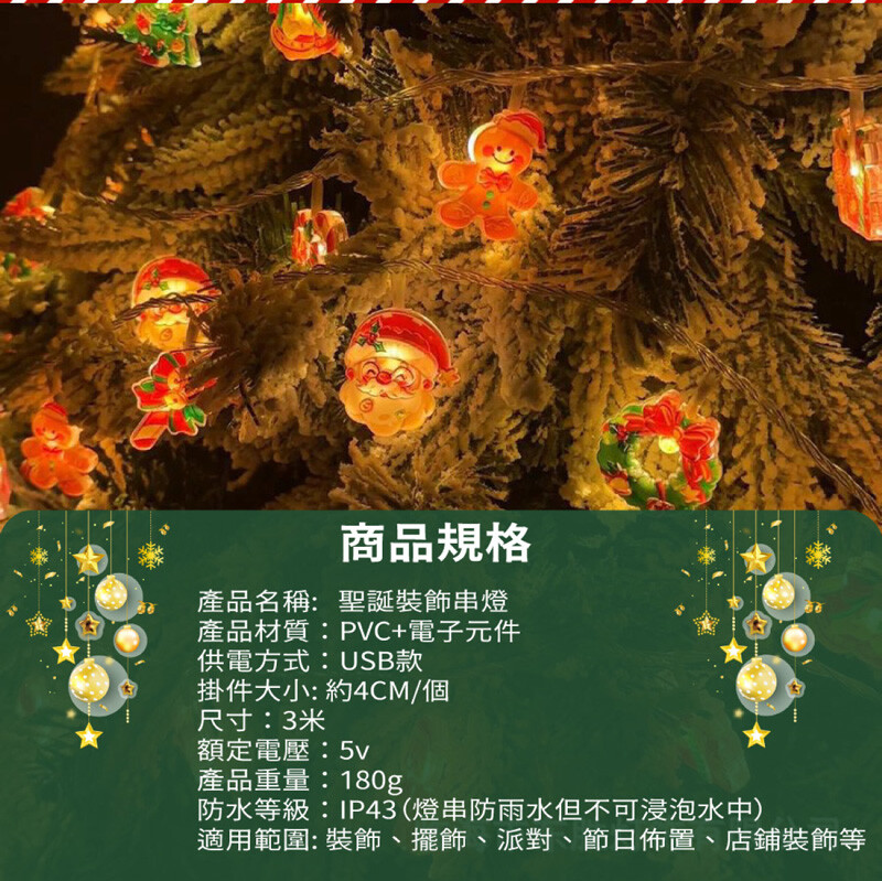 防水等級:IP43(燈串防雨水但不可浸泡水中)