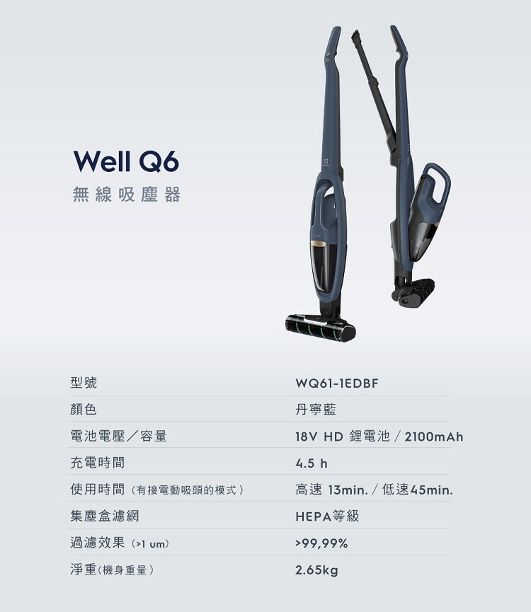 型號:Well Q6無線吸塵器(WQ61-1EDBF)