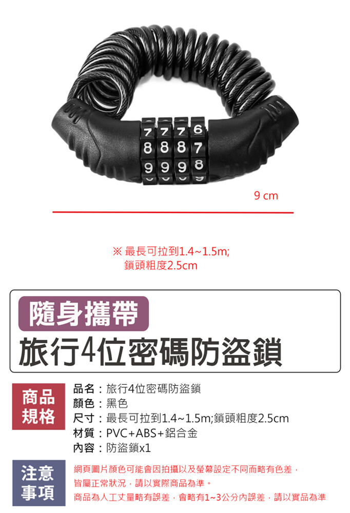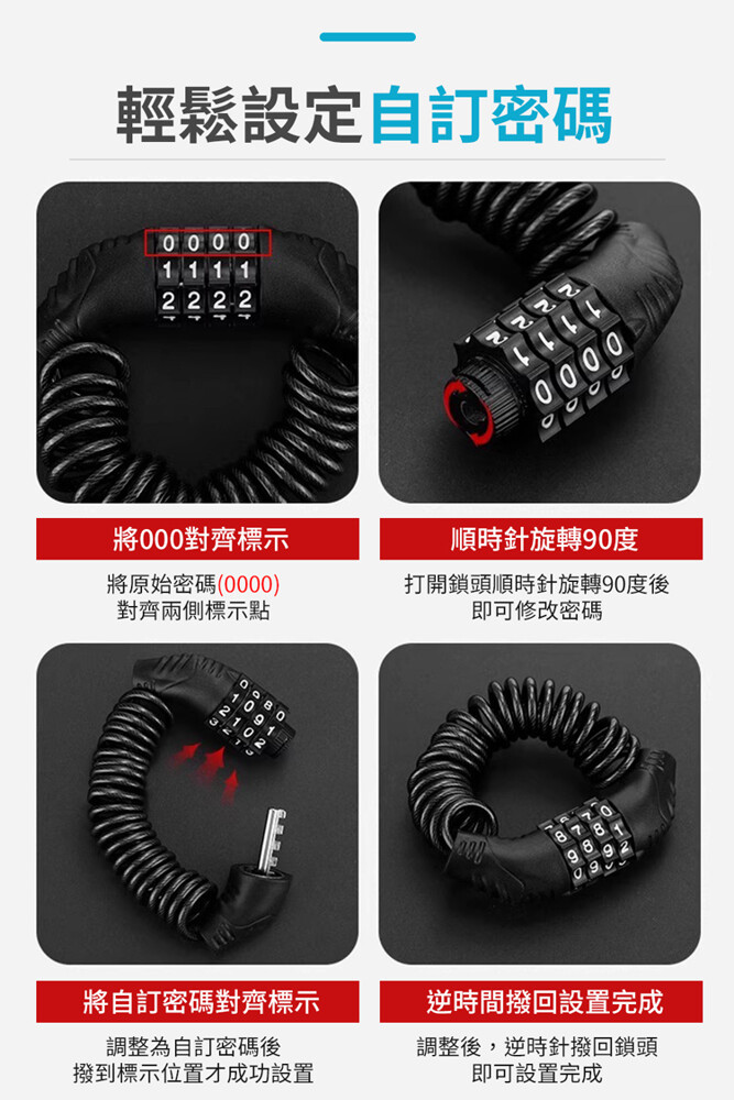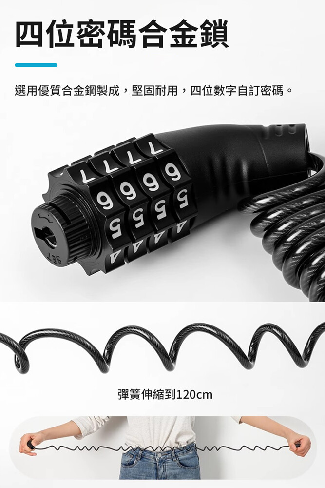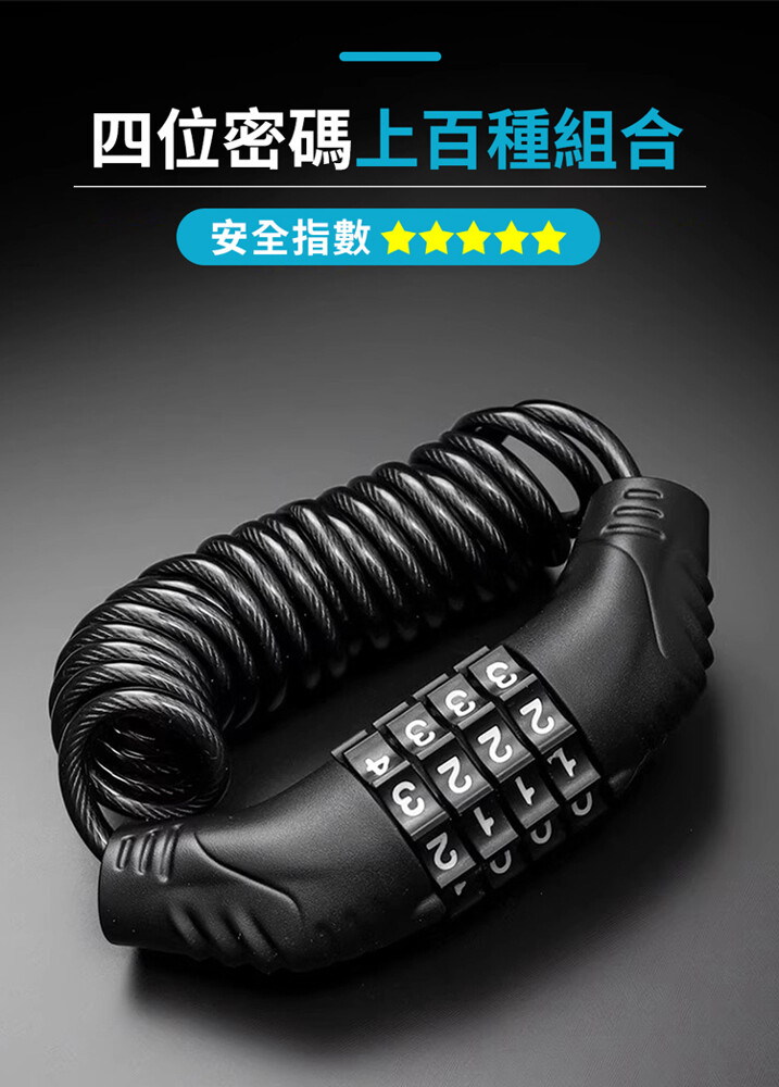 ★四位數密碼鎖,加粗鋼纜和合金鋼製成