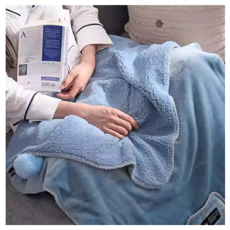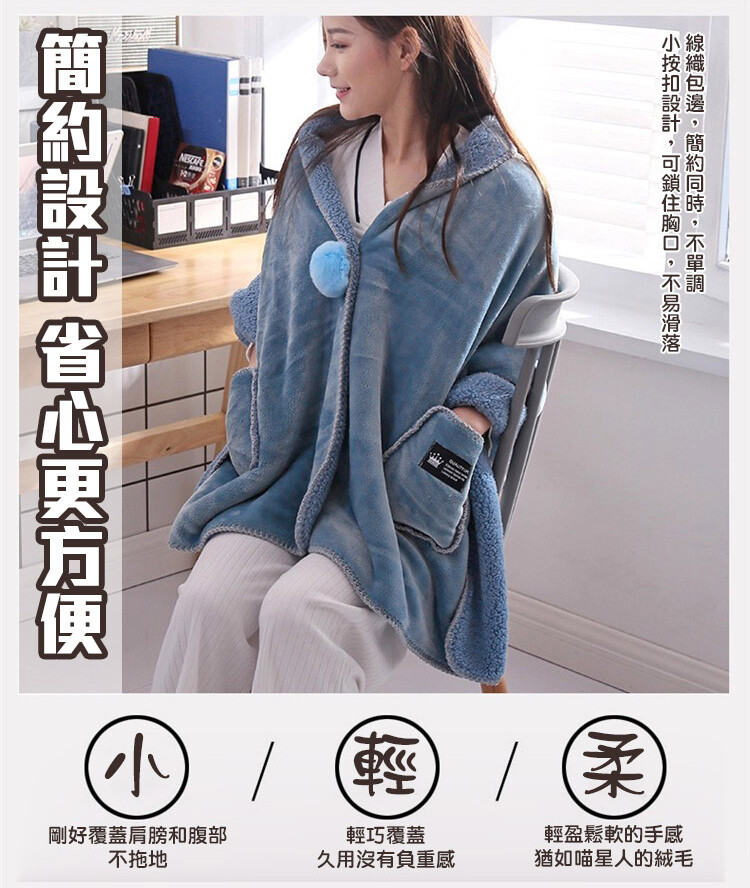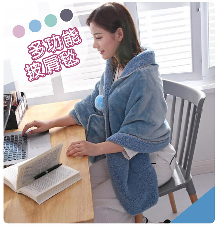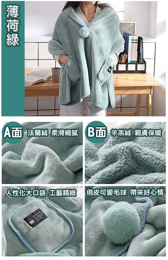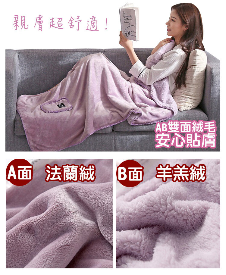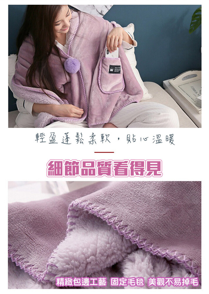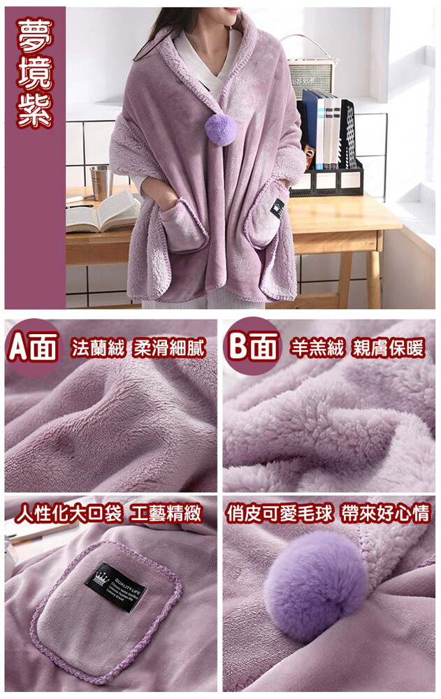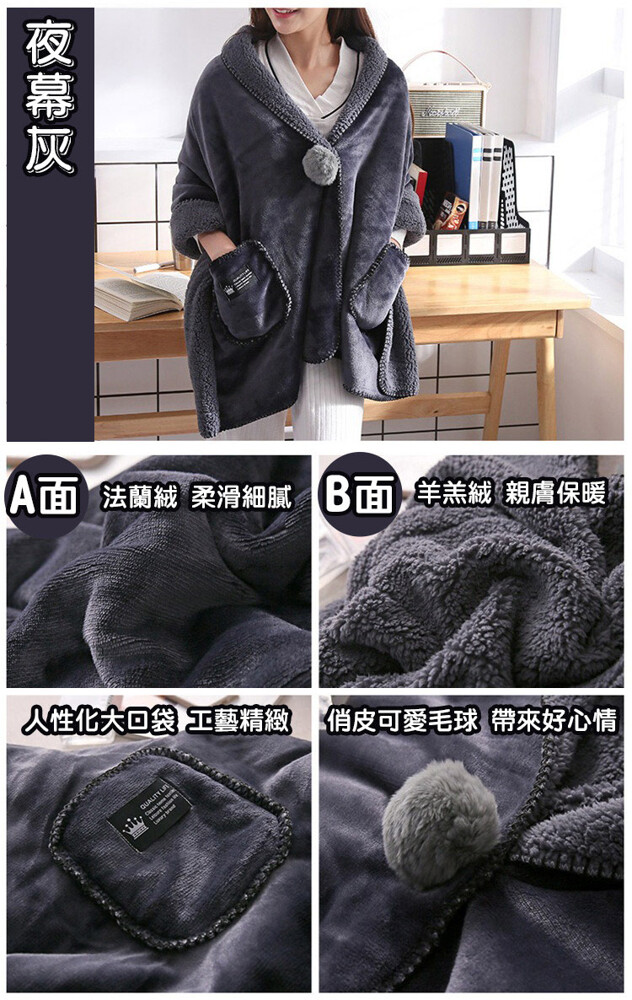 "加厚"雙面毛絨披肩毯,法蘭絨+羊羔絨,