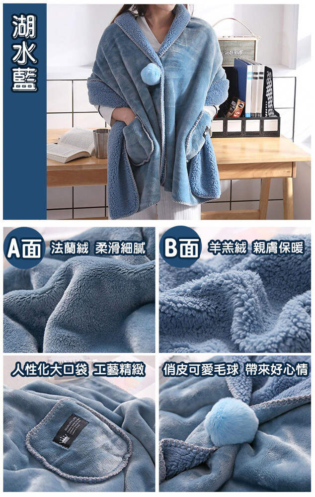 商品名稱:升級加長雙面絨毛雙口袋百搭披肩毯(D款)