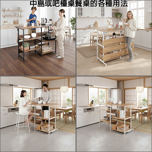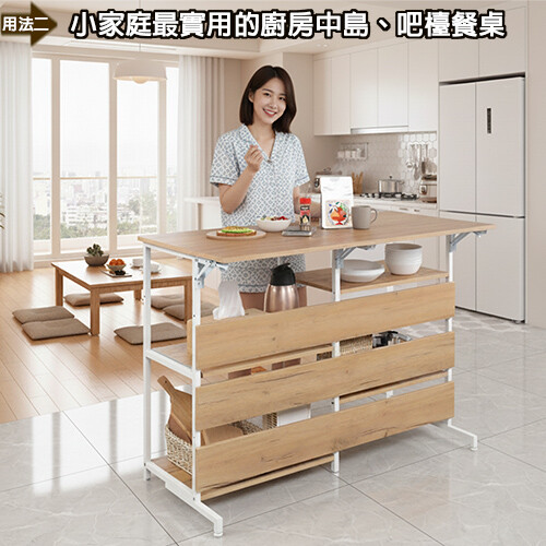 現在的居家空間十分有限,因此一時興起買了吧檯桌以及廚房收納架,最後卻因佔了許多空間是不是很懊惱?本商品可以滿足居家簡易中島與吧檯桌的功能,更有廚房電器置物架的多元收納功能,是現代小家庭最佳的選擇。