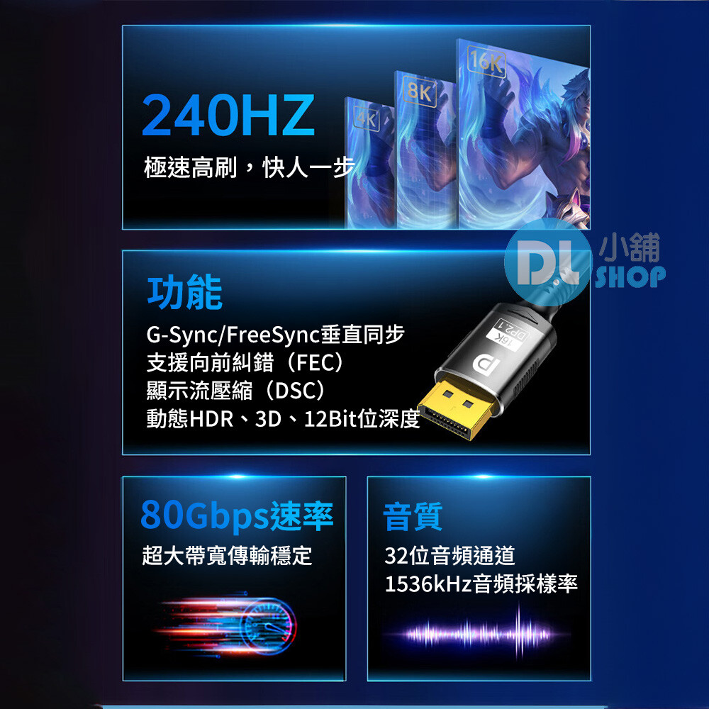 ✅電競級DP2.1版,並向下兼容 DP1.4/1.3/1.2/1.0