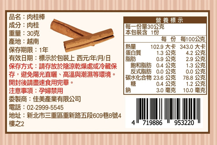 「一枝肉桂 讓料理多一分溫暖 讓時光多一分香氣」