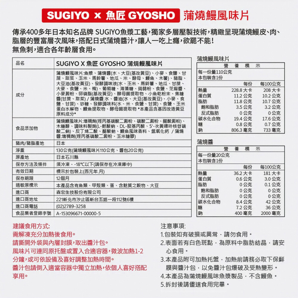 【SUGIYO x 魚匠GYOSHO】蒲燒鰻風味片 130g * 8包組【黑貓冷凍宅配】