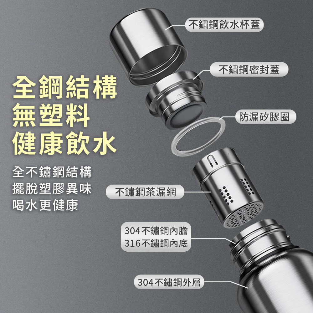 304+316不鏽鋼全鋼長效保溫瓶,整體不鏽鋼設計,喝水泡茶更安心,