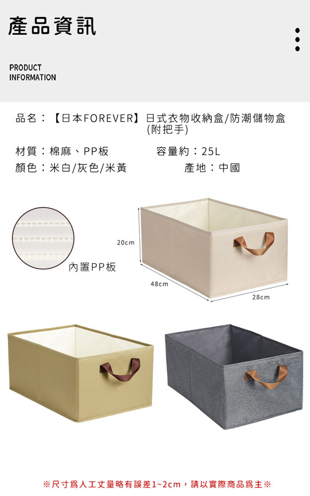 商品名稱:日式衣物收納盒/防潮儲物盒(附把手)