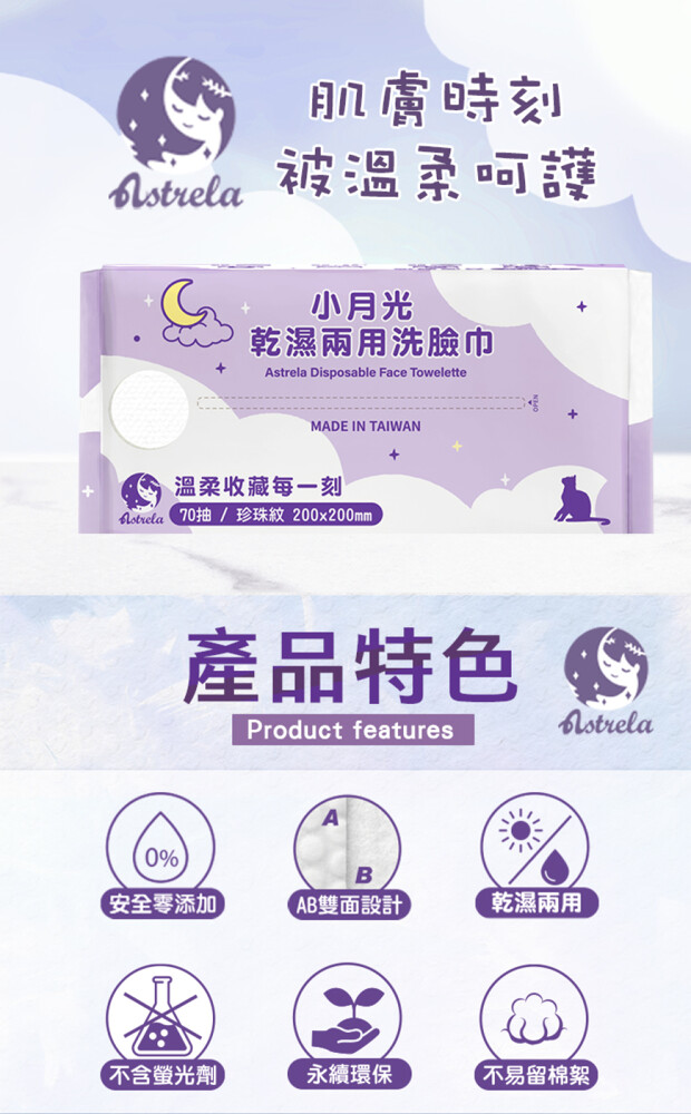 來而康 小月光 乾濕兩用洗臉巾 珍珠紋 大包款 70抽/包,72包/箱販售 乾濕兩用 乾濕巾