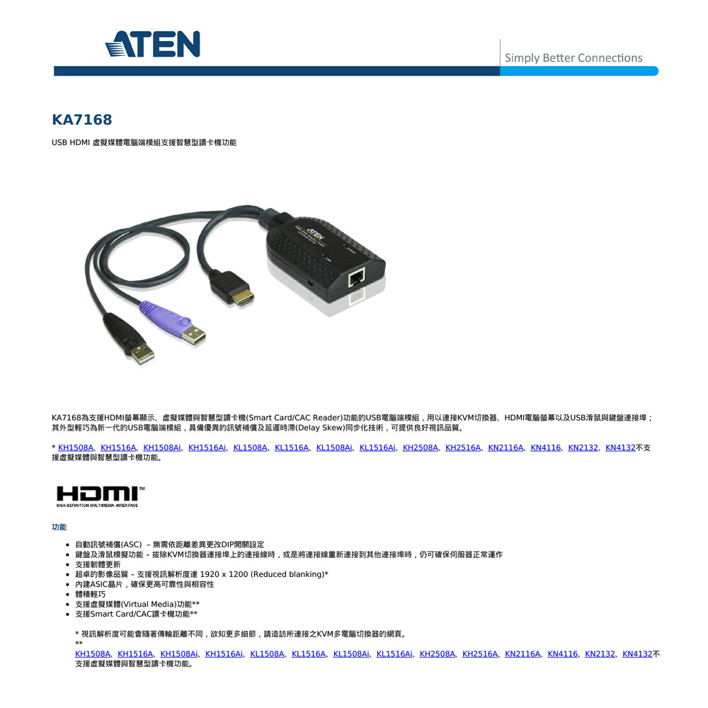 鍵盤及滑鼠模擬功能 – 拔除KVM切換器連接埠上的連接線時,或是將連接線重新連接到其他連接埠時,仍可確保伺服器正常運作