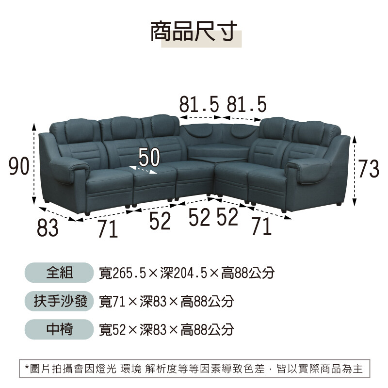 寬265.5×深204.5×高88公分