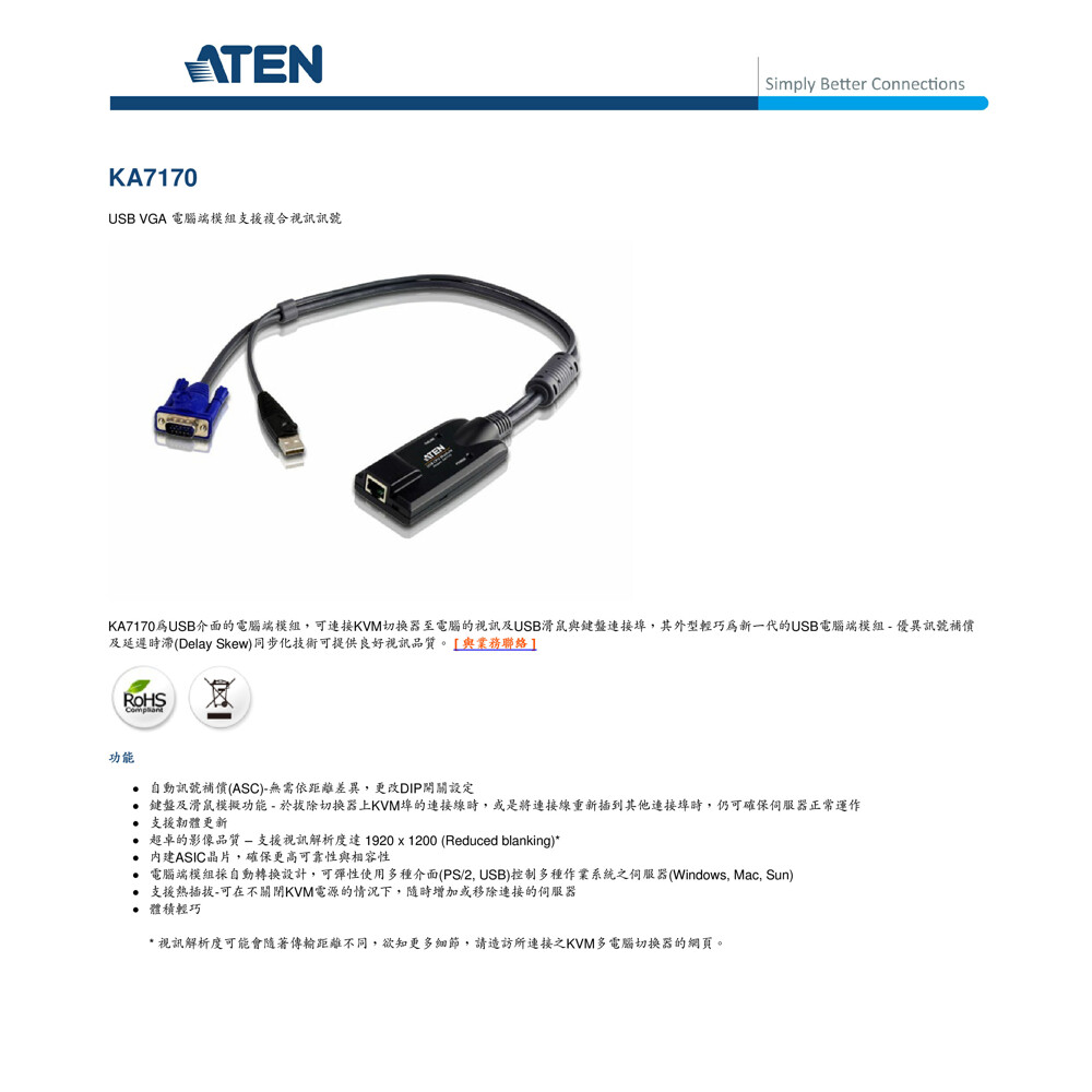 超卓的影像品質 – 支援視訊解析度達 1920 x 1200 (Reduced blanking)