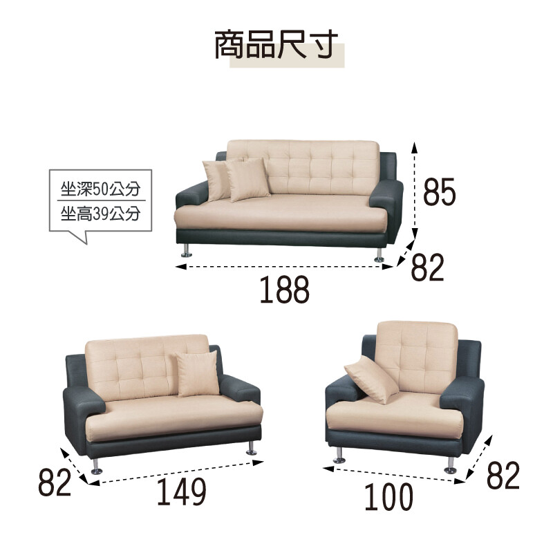 3人座:寬188×深82×高85公分