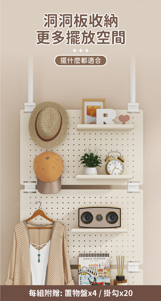 配件:洞洞板x4+掛勾x20+置物盤x4