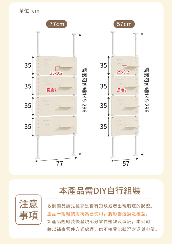 尺寸:面寬57x高度可伸縮145-296cm±5%