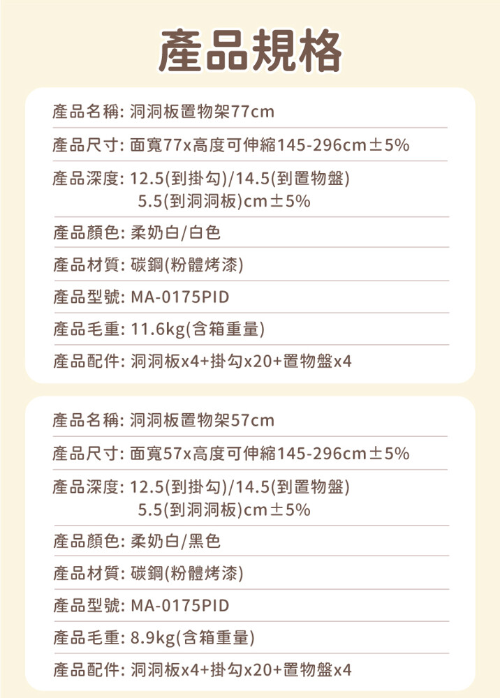 深度:12.5(到掛勾)/14.5(到置物盤)/5.5(到洞洞板)cm±5%