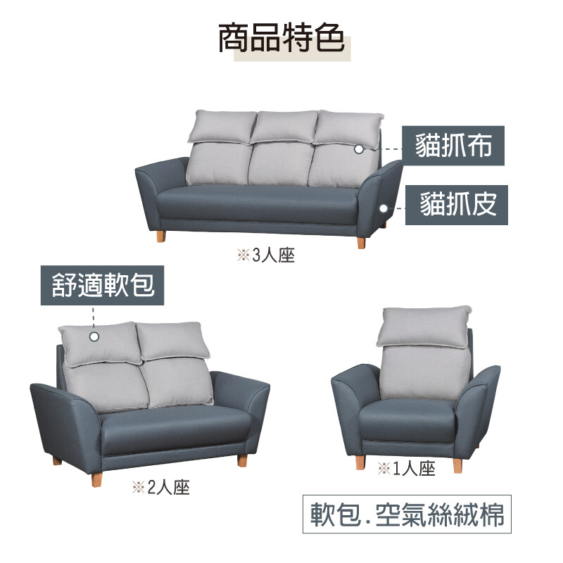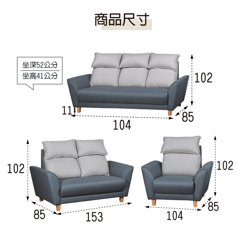 3人座:寬206×深85×高102公分