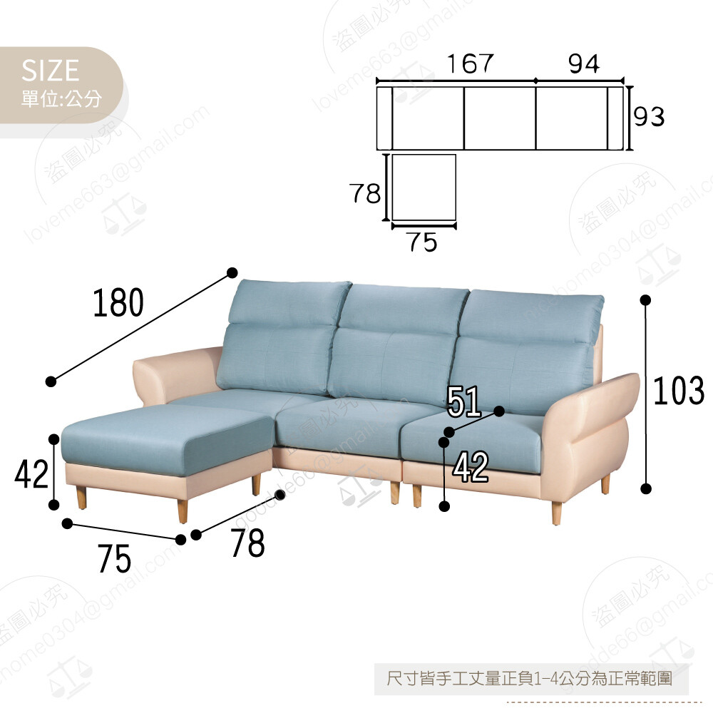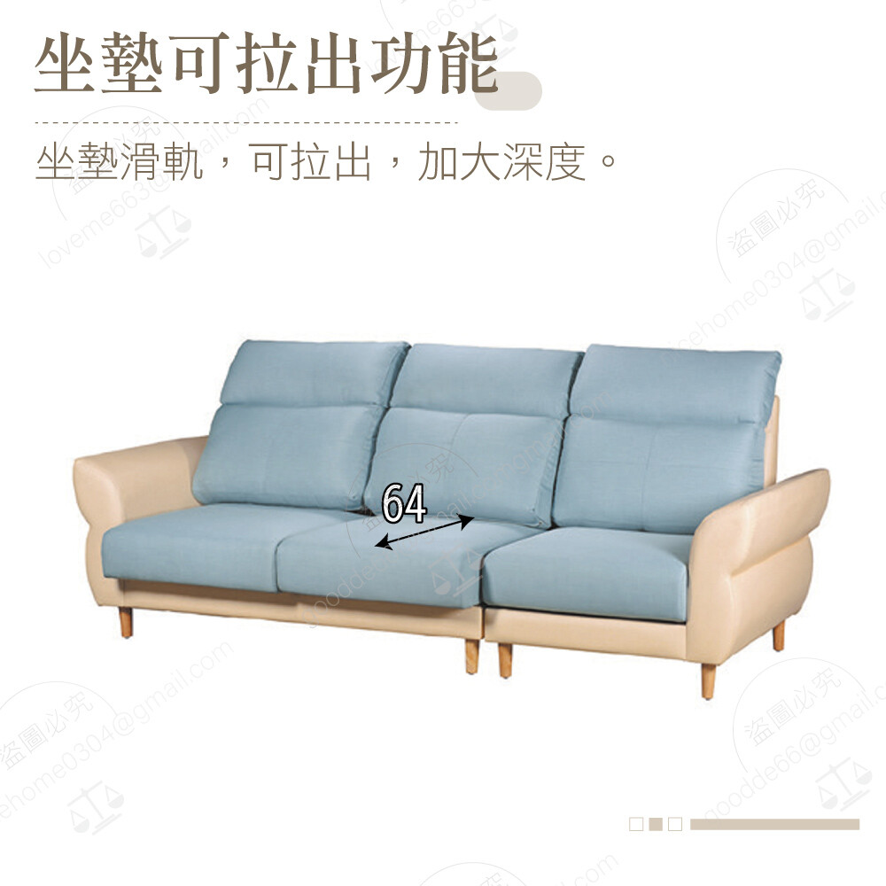 三人沙發:寬261×深93×高103公分