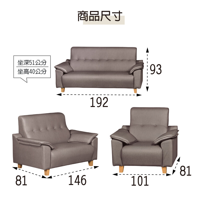 3人座:寬192×深81×高93公分